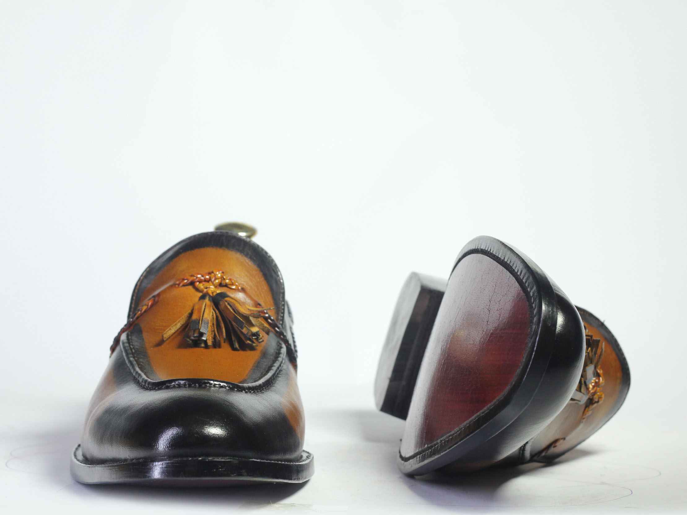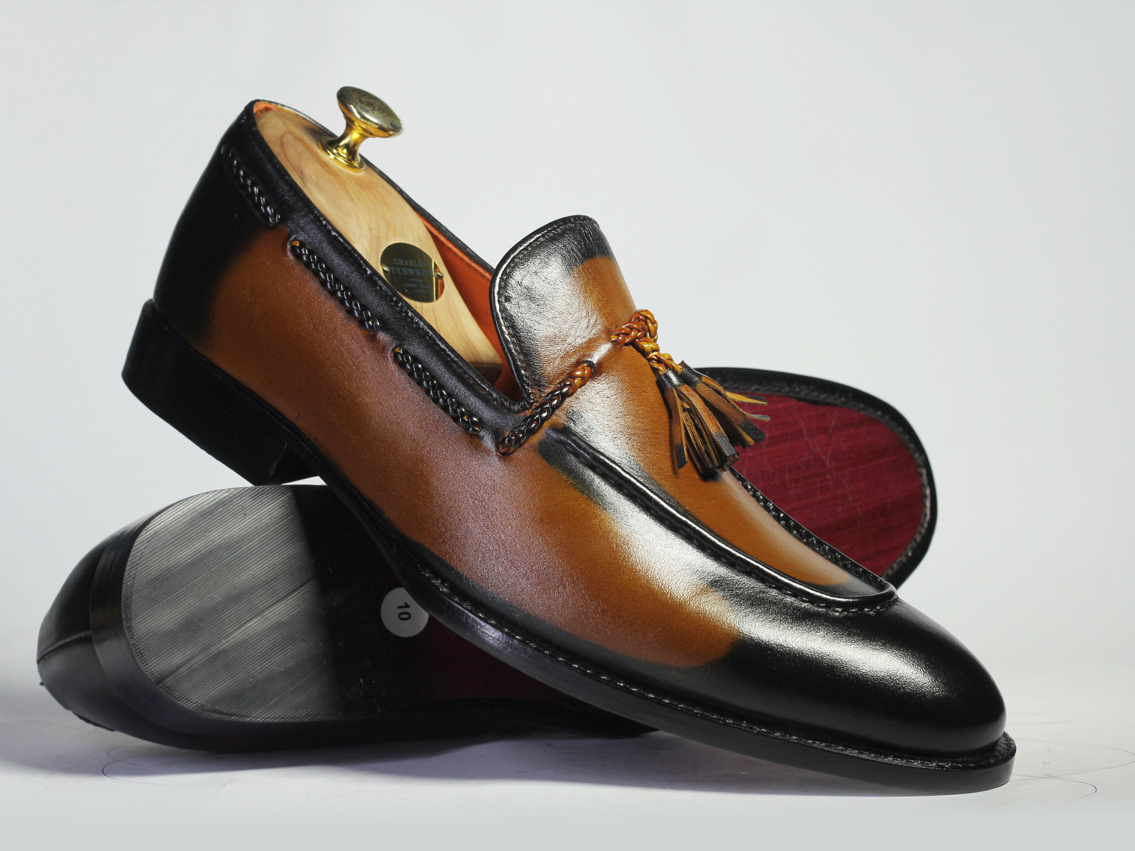 Handmade Men's Black & Brown Color Leather Round Toe Dress Formal Slip On Moccasins