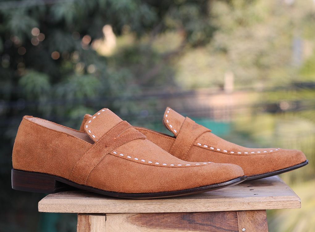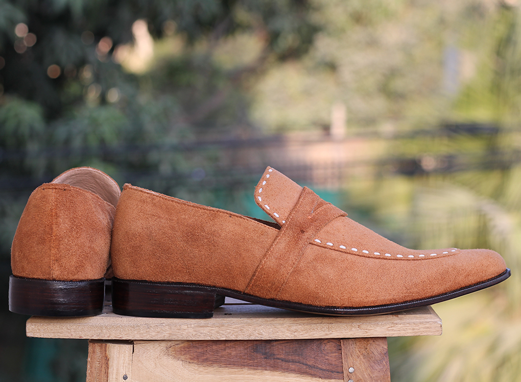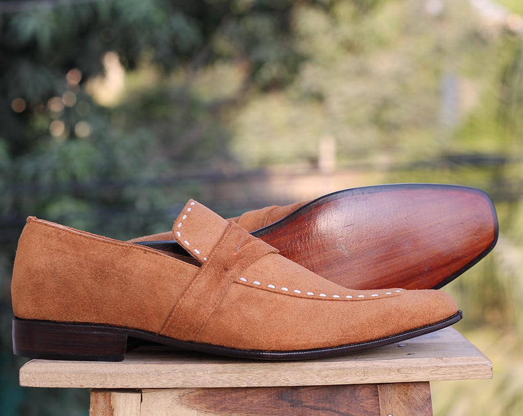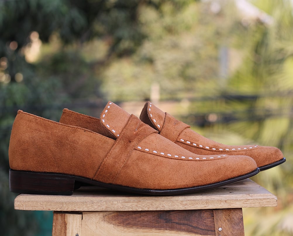 Handmade Tan Penny Loafers Suede Shoes For Men's