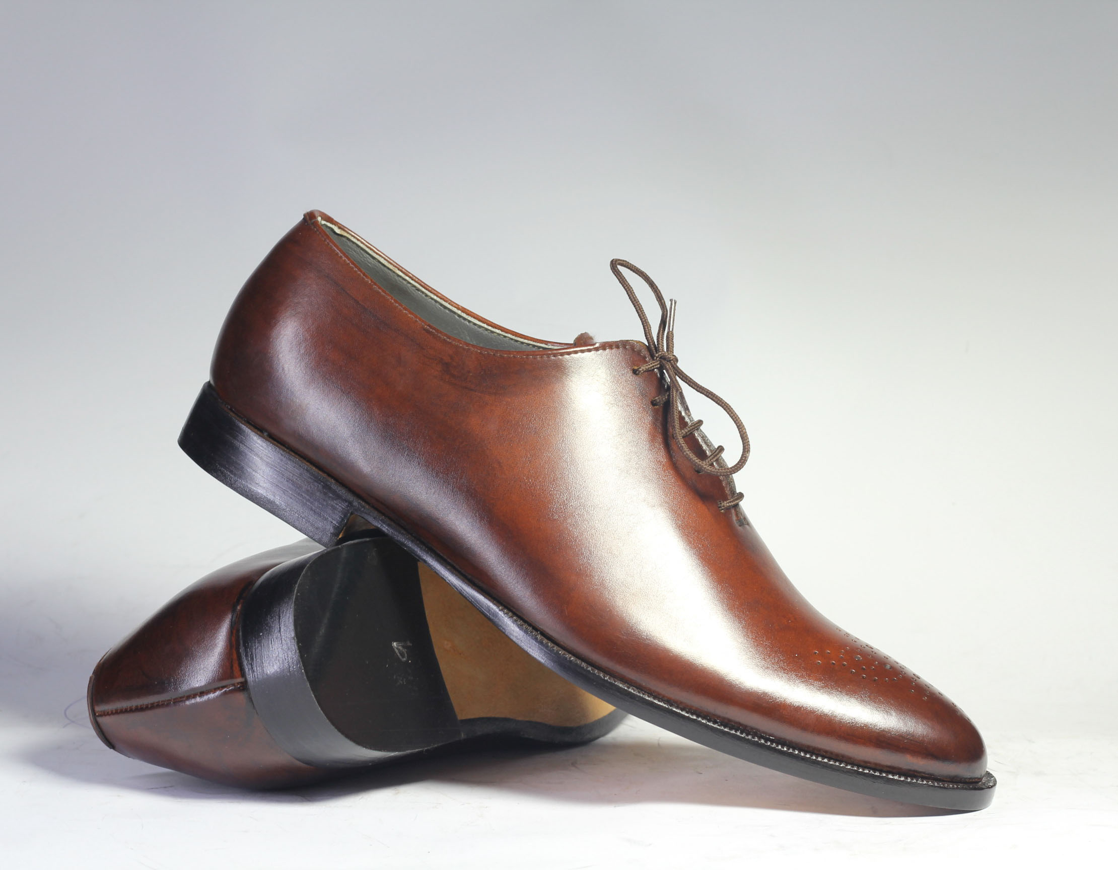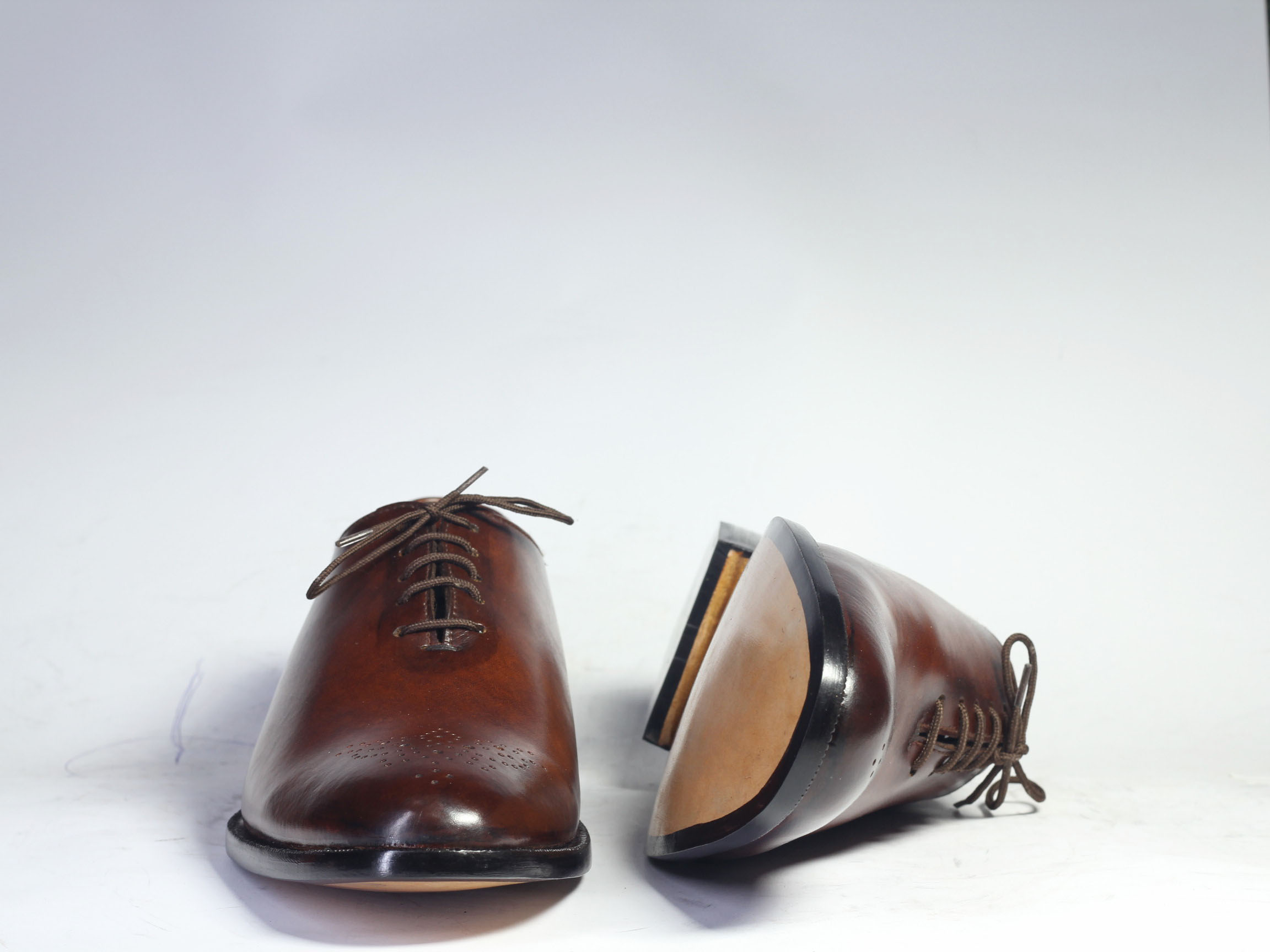 Handmade Men's Brown Brogue Leather Lace Up Shoes