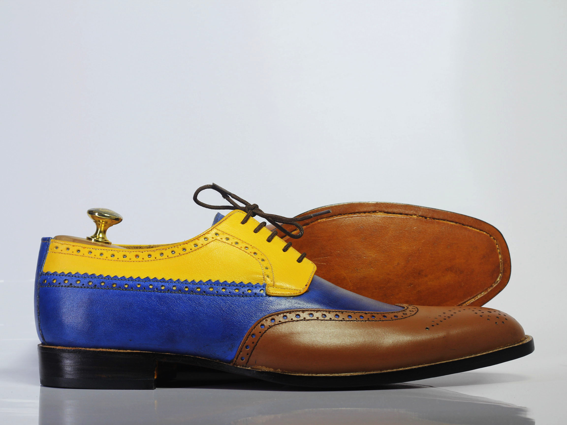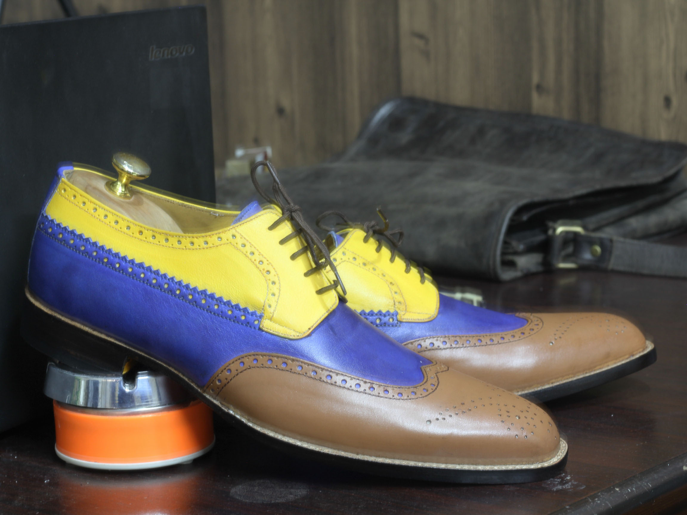 Handmade Men's Multi Shades Wing Tip Brogue Toe Leather Suede Lace Up Shoes