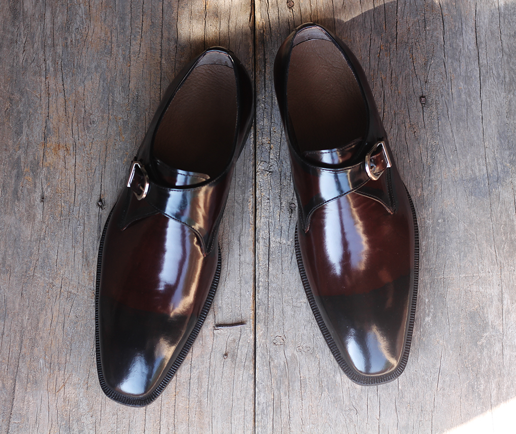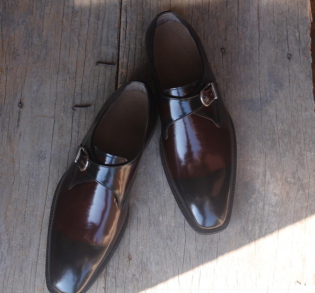 Handmade Men's Chocolate Brown Monk steps Leather Dress Shoes