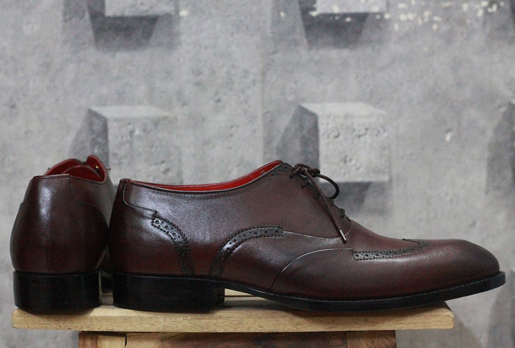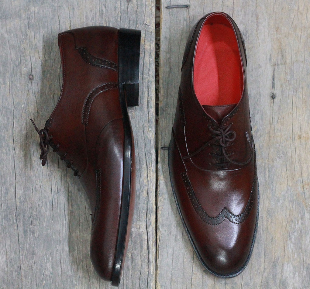 Handmade Chocolate Brown Wing Tip Lace Up Leather Shoes For Men's