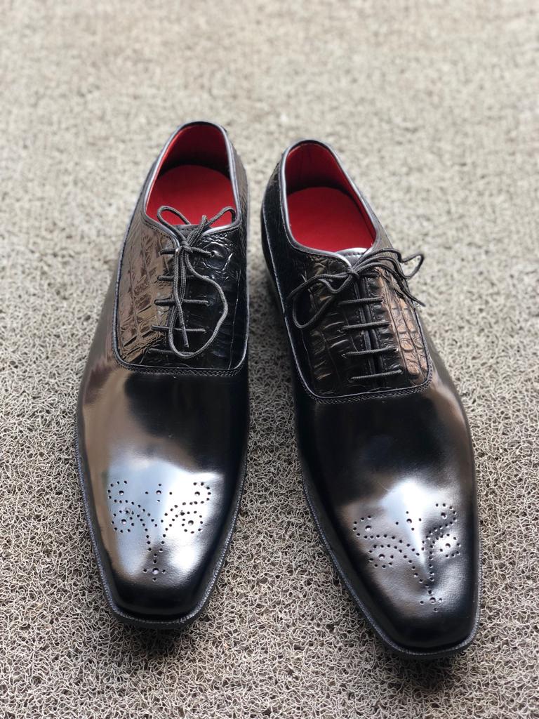 Handmade Men's Black Brogue toe Leather Lace Up Shoes