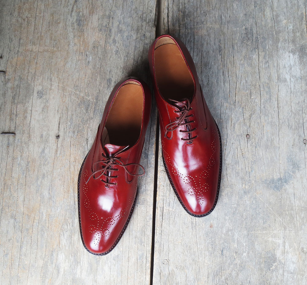 Handmade Men's Burgundy Color Leather Brogue Toe Dress Lace Up Shoes