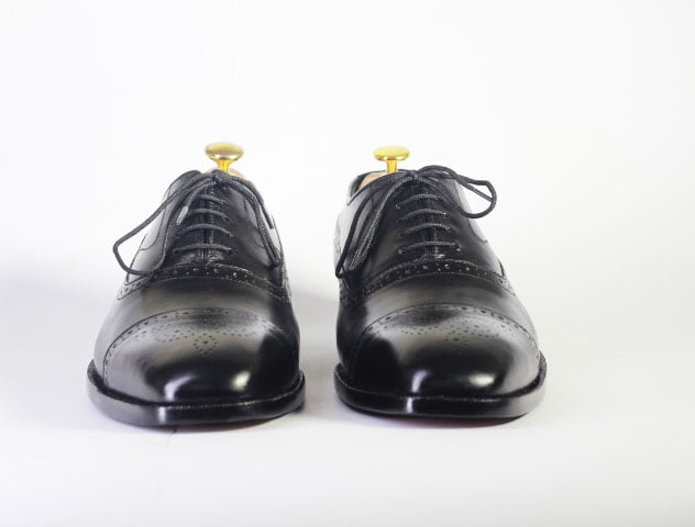 Handmade Men's Black Color Leather Cap Toe Brogue Lace Up Dress Shoes