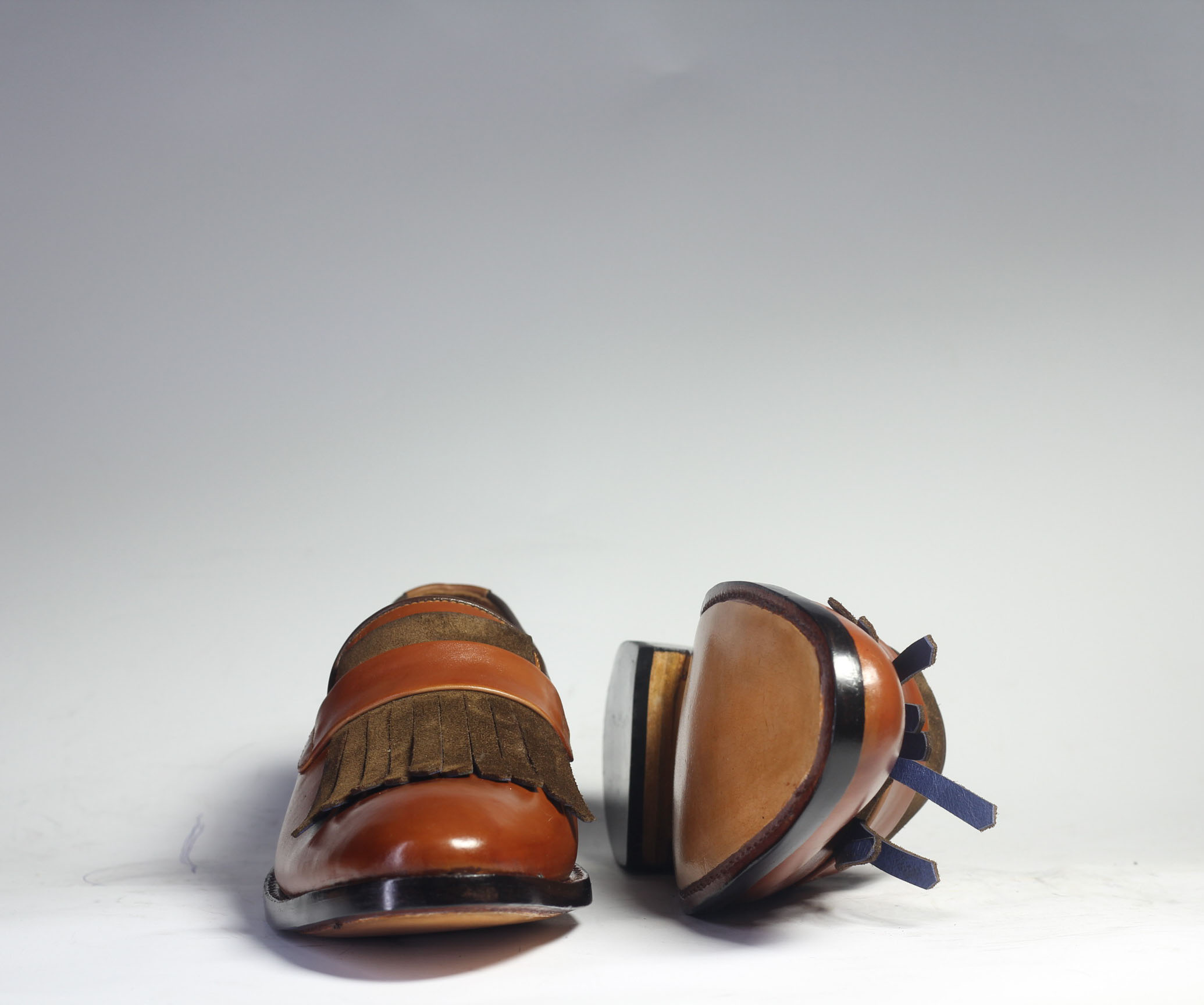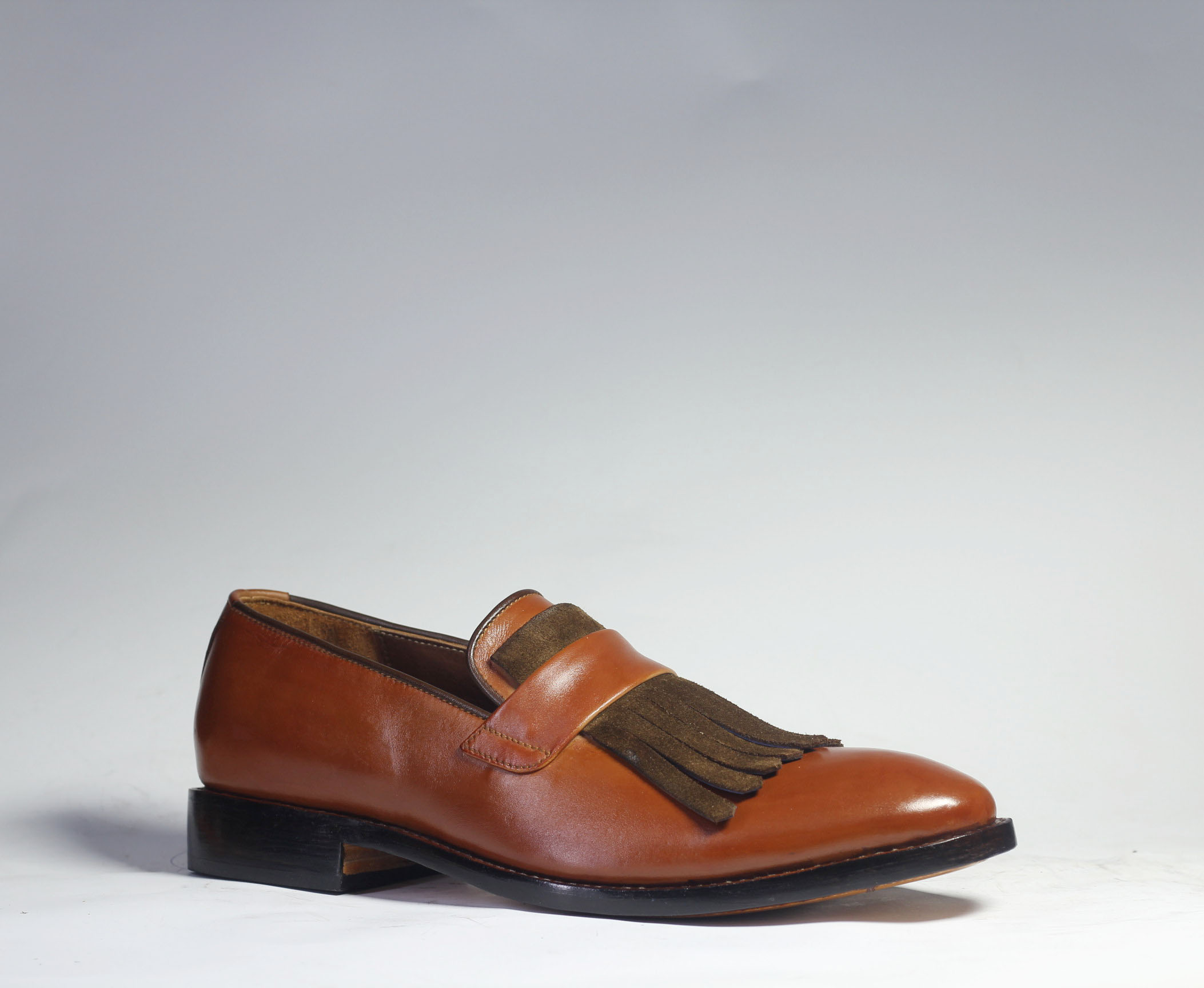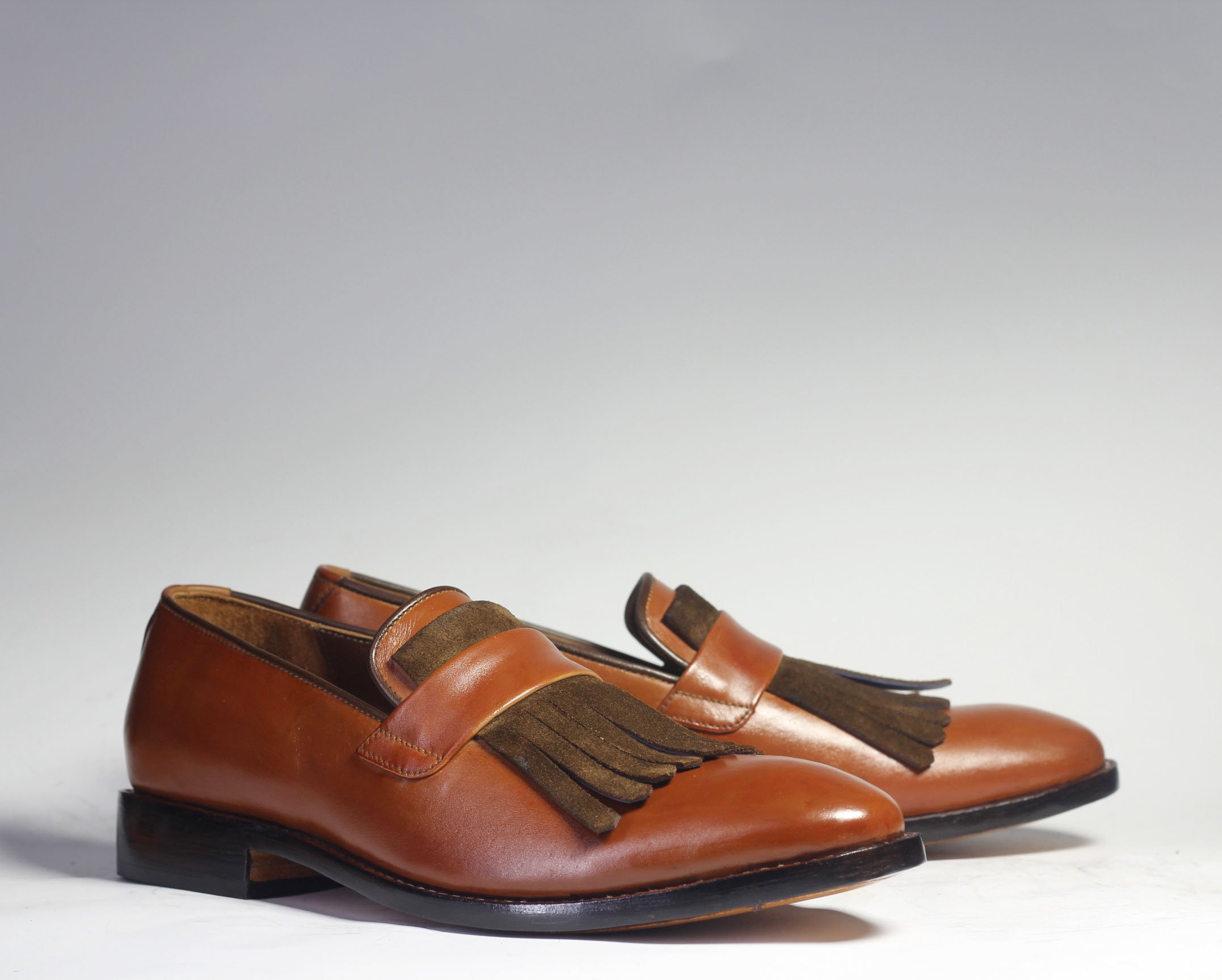 Handmade Men's Brown Color Leather & Suede Fringe Dress Formal Loafers