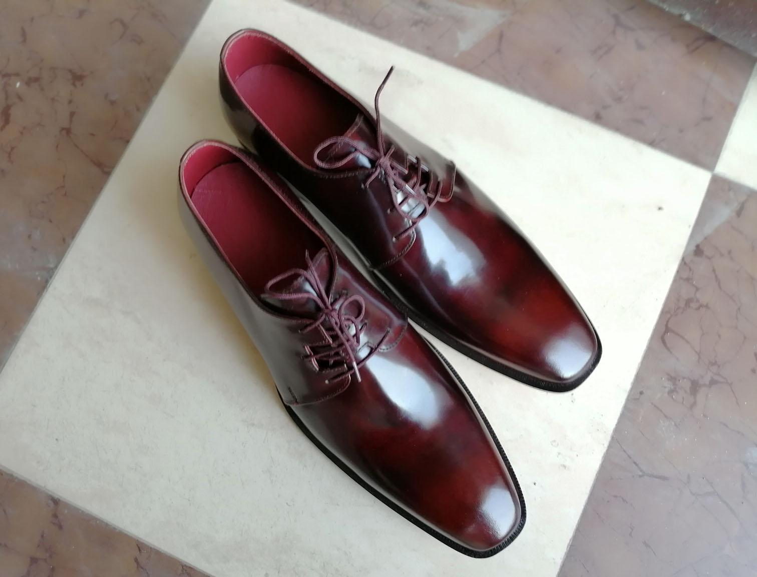 Handmade Men's Burgundy Color Leather Dress Lace Up Derby Shoes