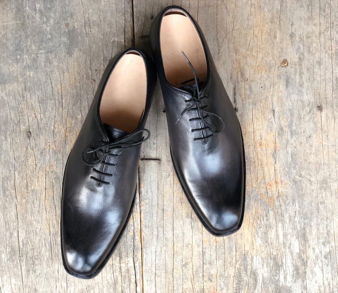 Handmade Men's Black Color Leather Whole Cut Dress Lace Up Shoes