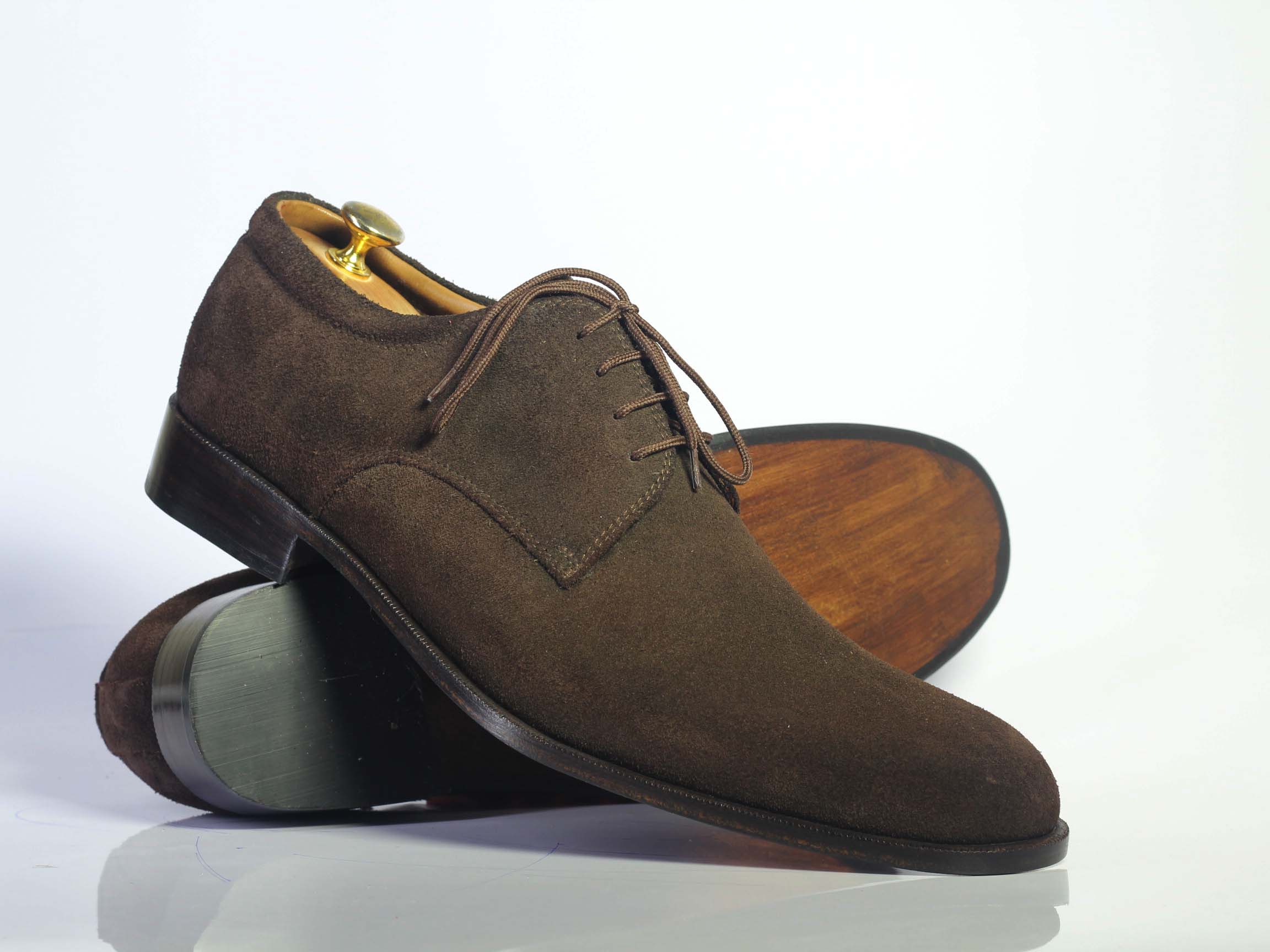 Handmade Men's Chocolate Brown Color Suede Lace Up Dress Shoes