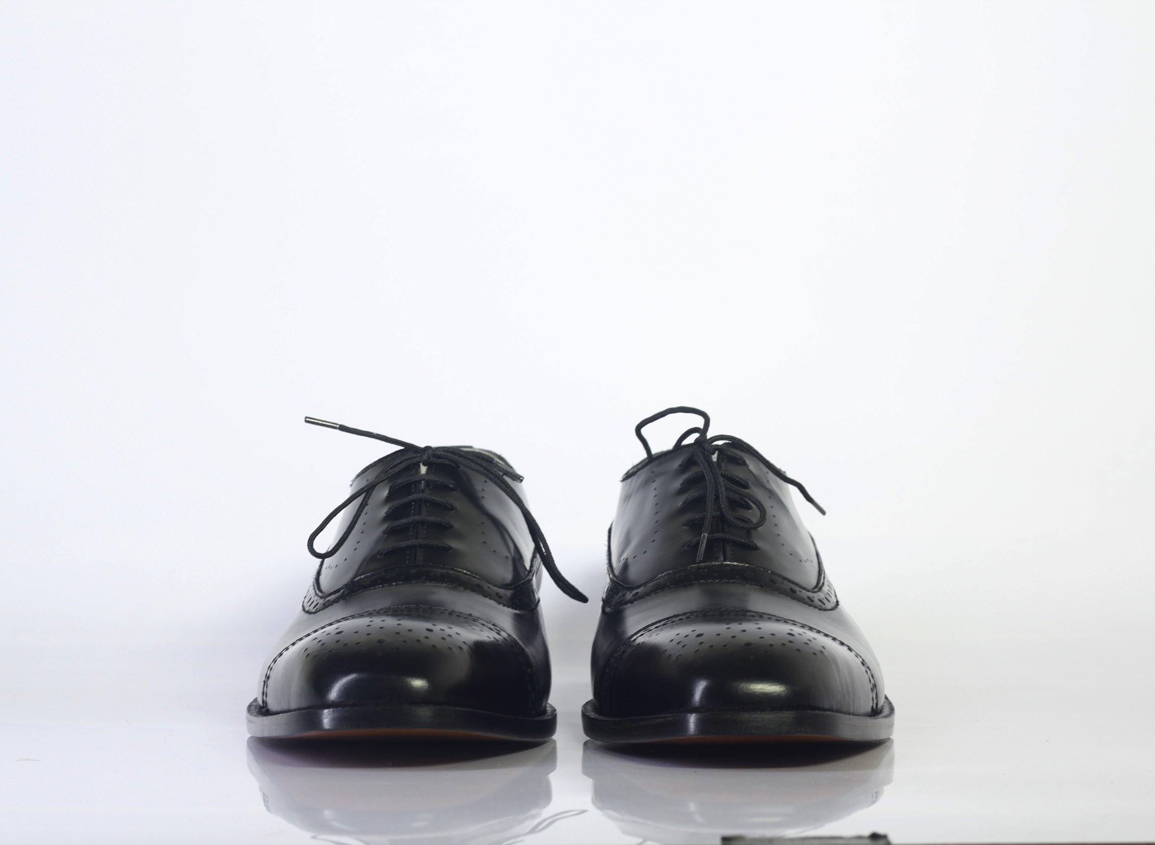 Handmade Men's Black Color Leather Cap Toe Brogue Dress Lace Up Shoes