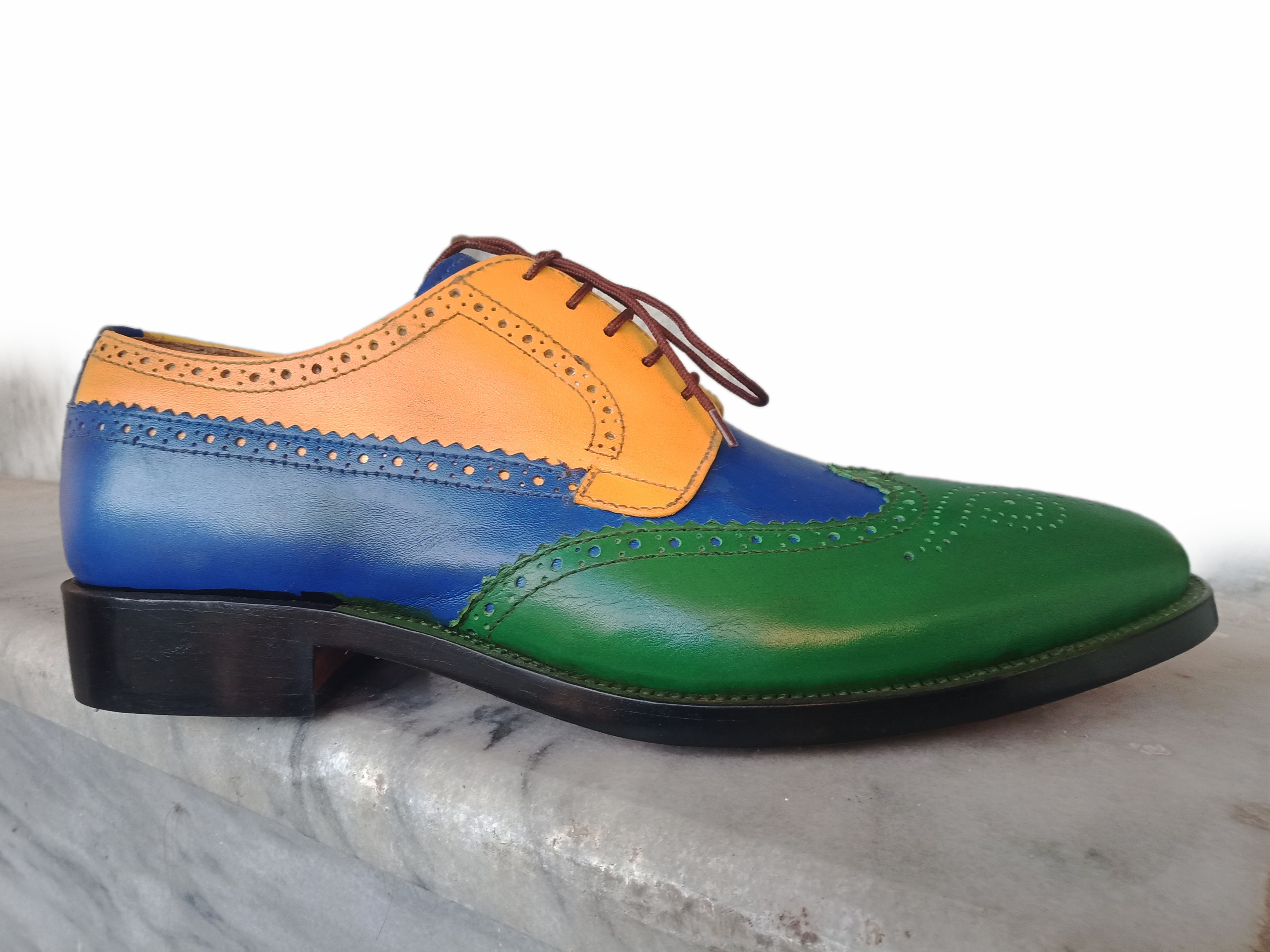 Handmade Multi color Leather Stylish Wing Tip Brogue Lace Up Shoes For Men's