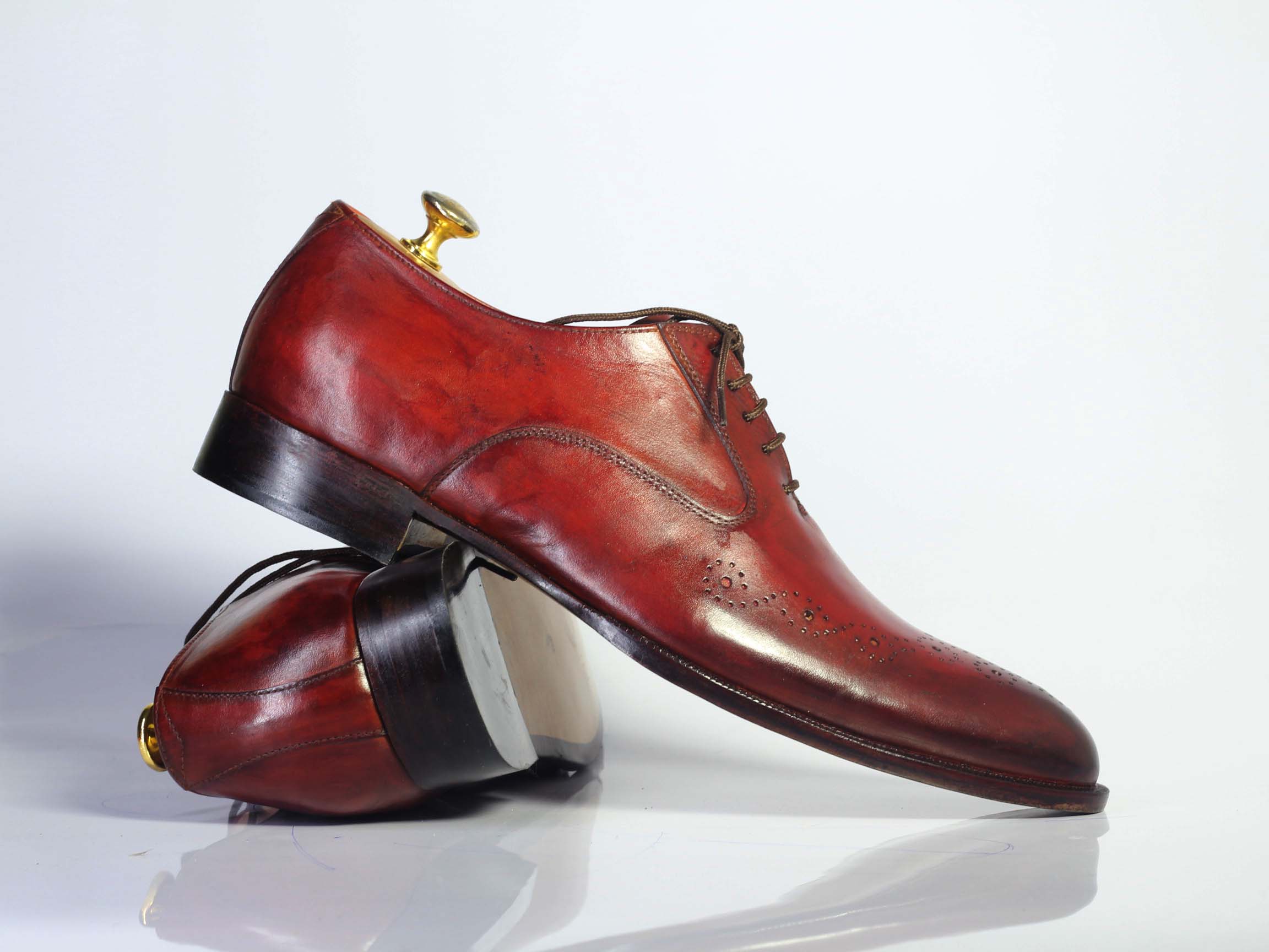 Handmade Men’s Red Brogue Toe Leather Lace up Shoes