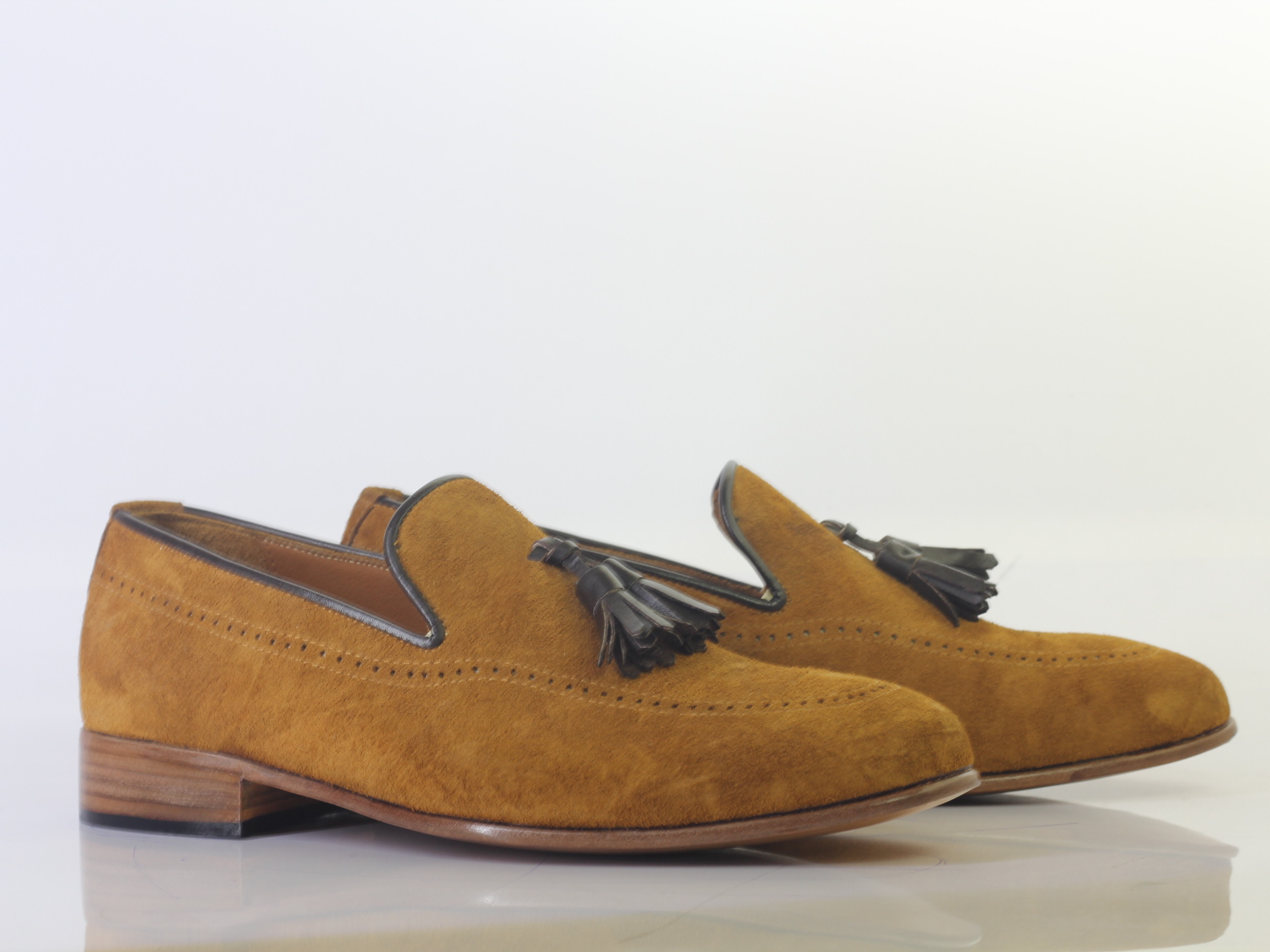 Handmade Men's Brown Tussles Round Toe Suede Stylish Loafers
