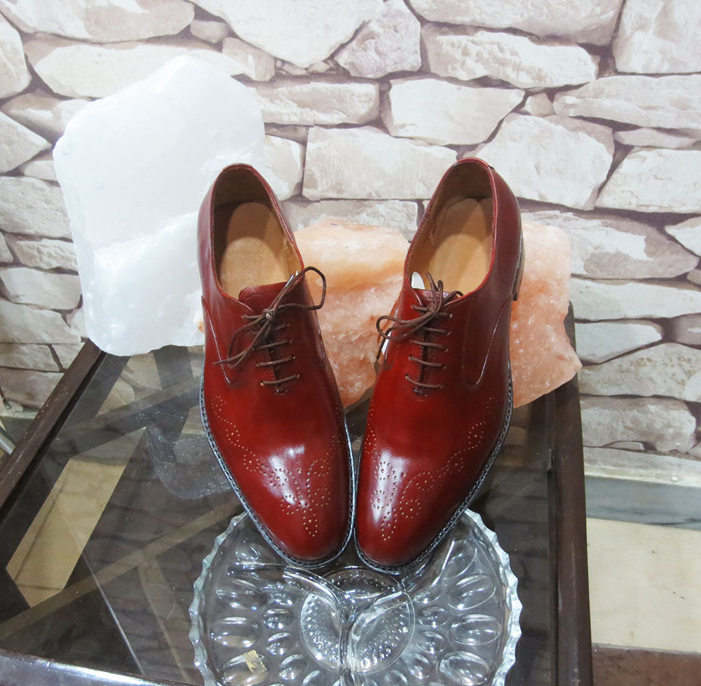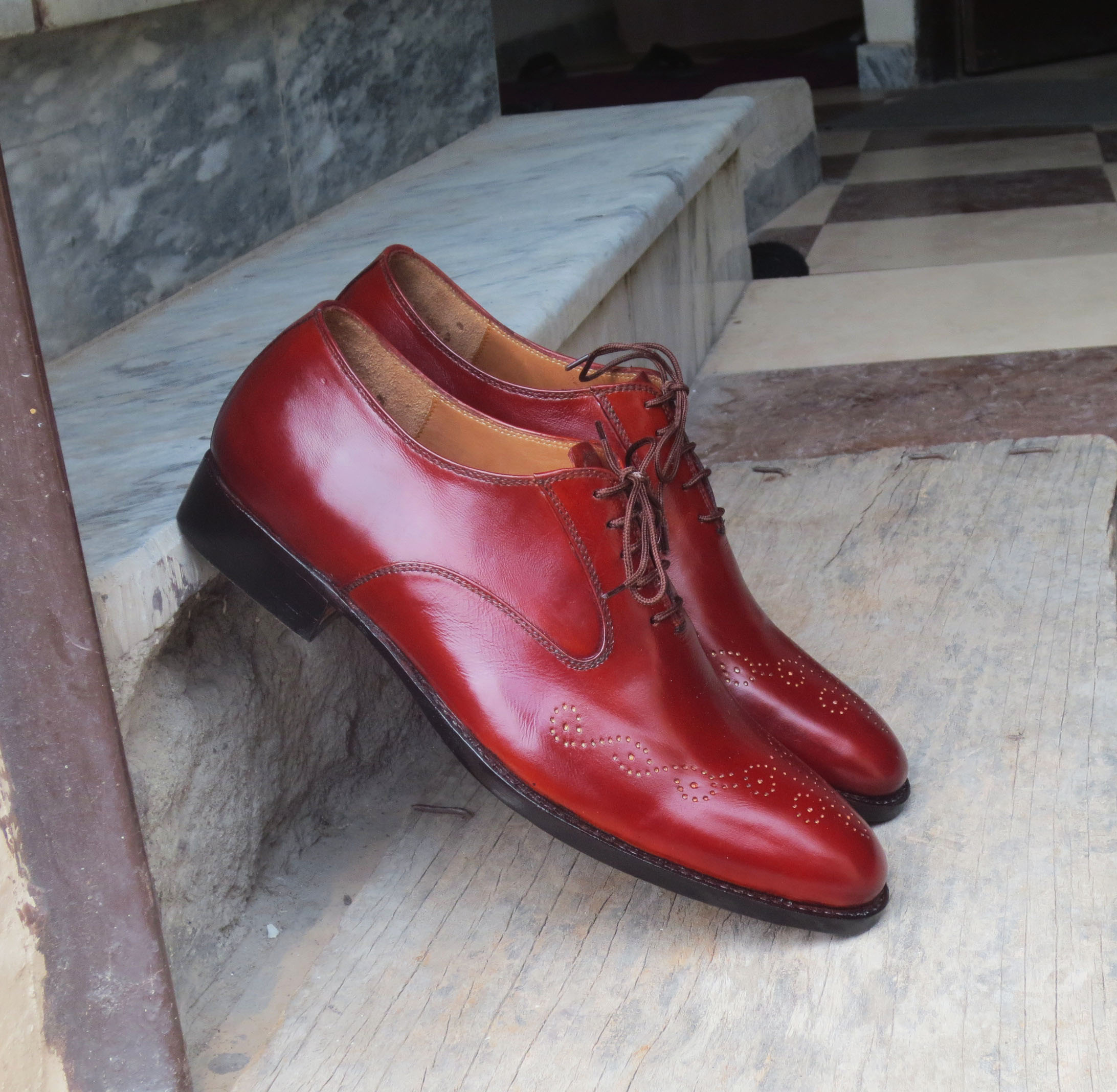 Handmade Red Brogue Toe Leather Lace Up Shoes For Men's