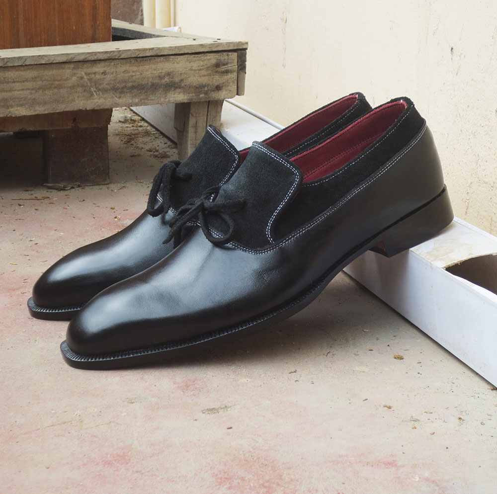 Handmade Men's Black Leather Suede Lace Up Shoes