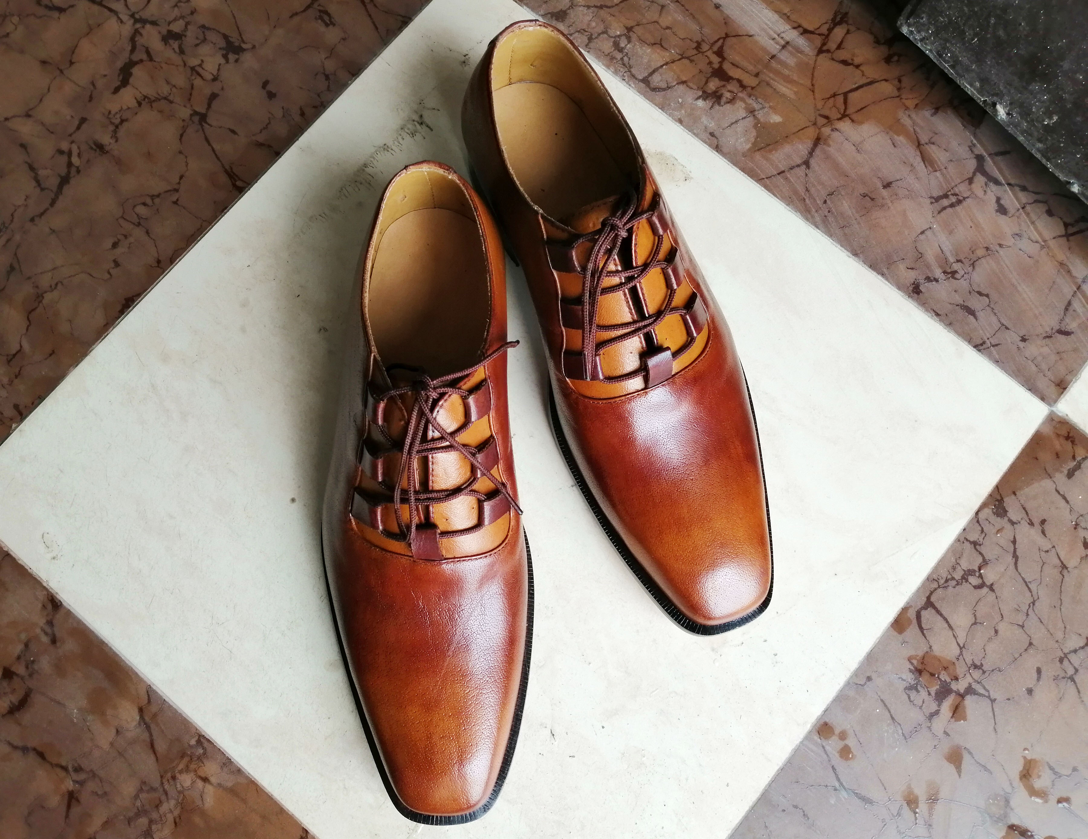Handmade Orange Leather Stylish Lace Up Shoes For Men's