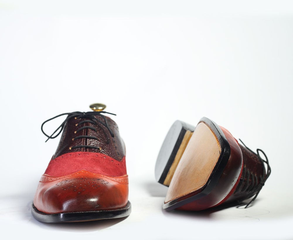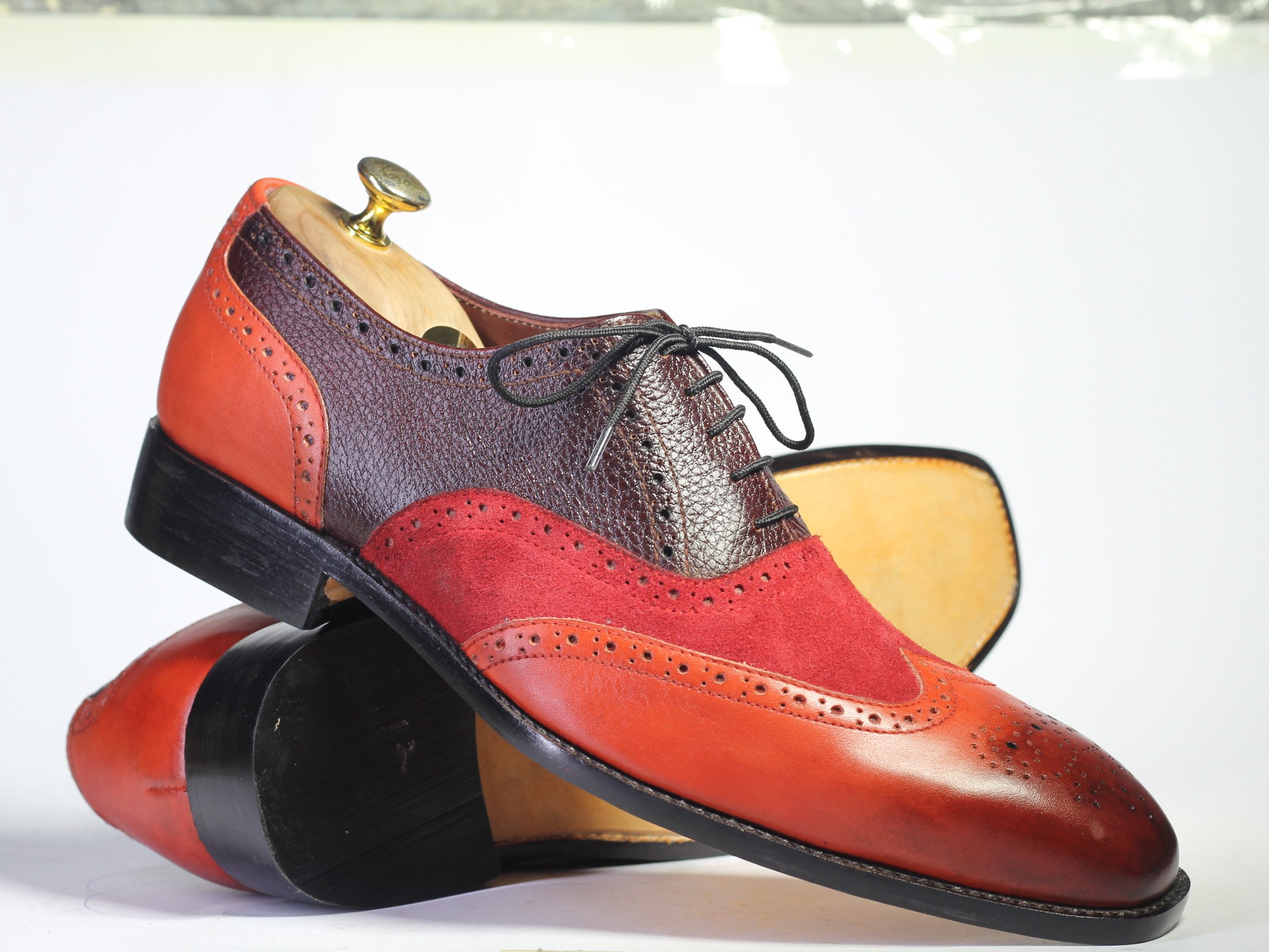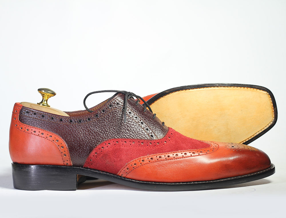Handmade Men's Multi Shades Wing Tip Brogue Toe Leather Suede Lace Up Shoes