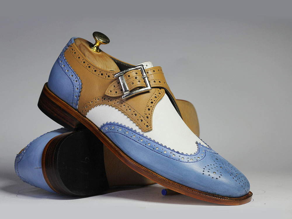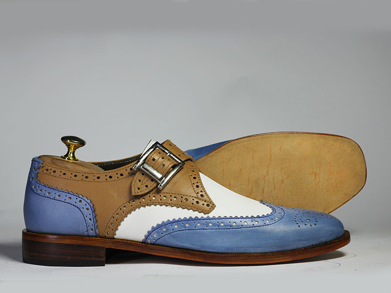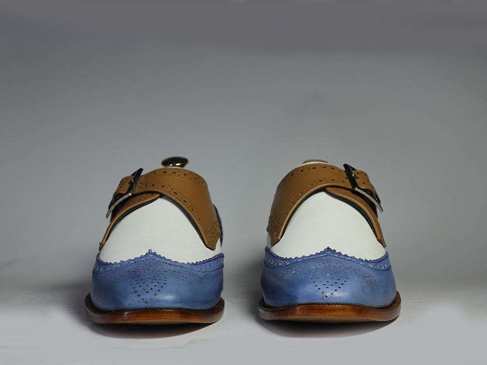 Handmade Men's Multi Shades Wing Tip Brogue Monk Strap Leather Suede Lace Up Shoes