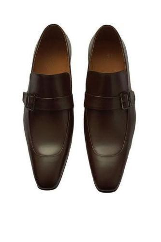 Handmade Men's Brown Color Monk Strap Leather Dress Formal Shoes