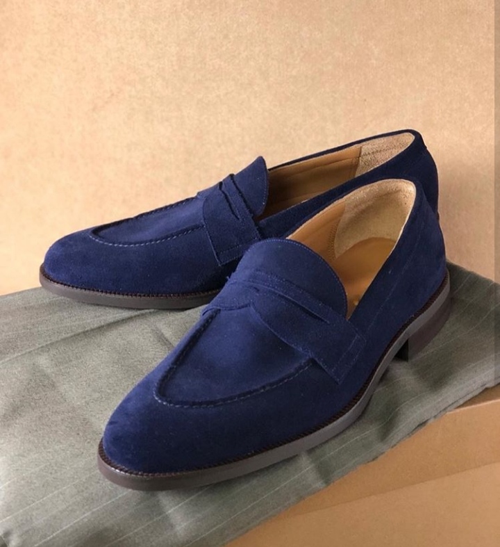 Handmade Blue Round Toe Suede Stylish Shoes For Men's