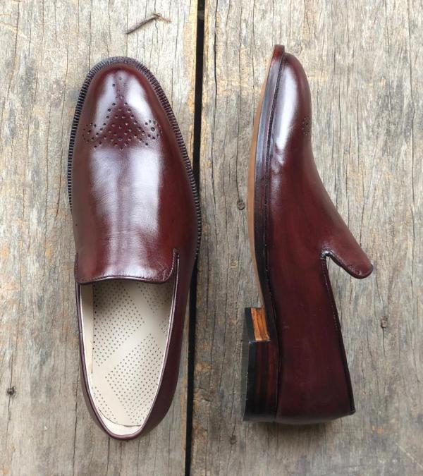 Handmade Men's Burgundy Color Brogue Toe Leather Stylish Loafers