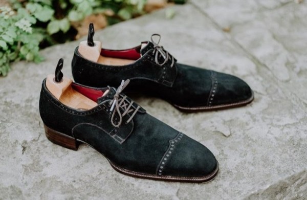 Handmade Black Suede Stylish Wing Tip Lace Up Shoes For Men's