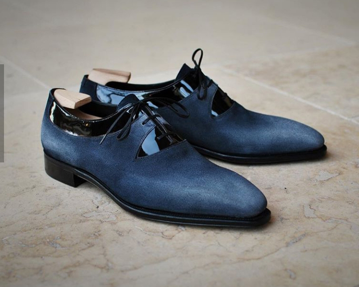 Handmade Men's Black & Blue Leather Suede Stylish Lace Up Shoes