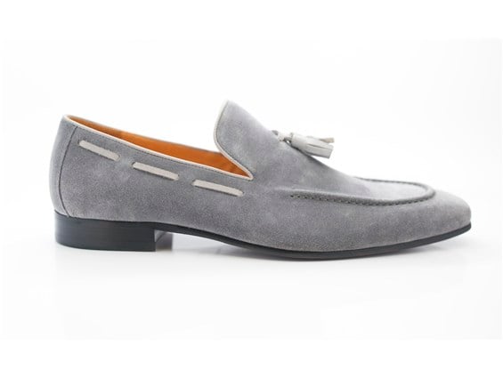 Handmade Men's Gray Color Suede Round Toe Tussle Loafers