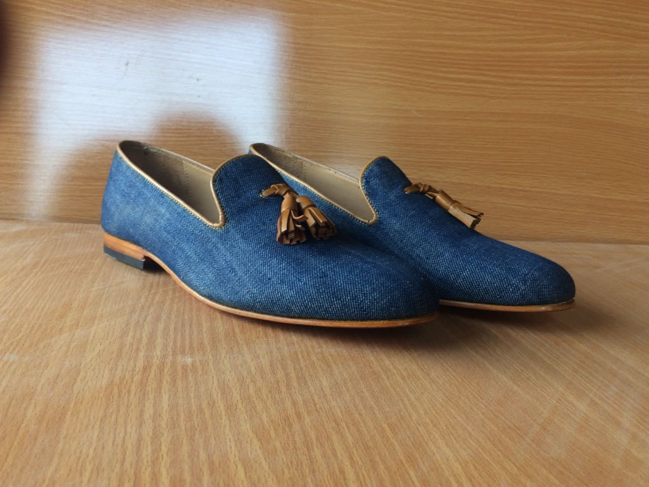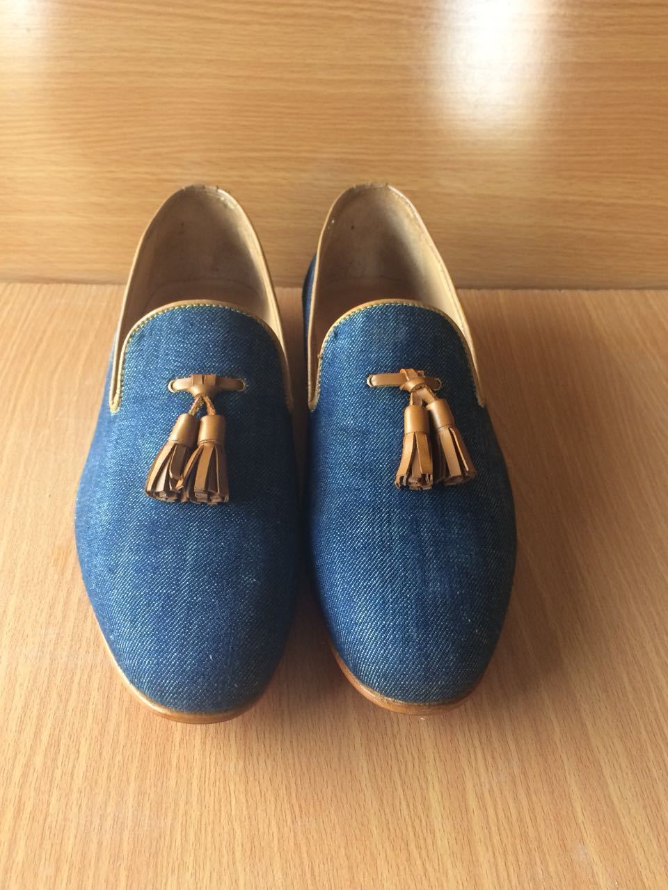 Handmade Blue Color Tussles Denim Stylish Loafer For Men's