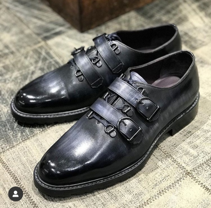 Handmade Men’s Black Color Leather Double Buckle Stylish Dress Shoes