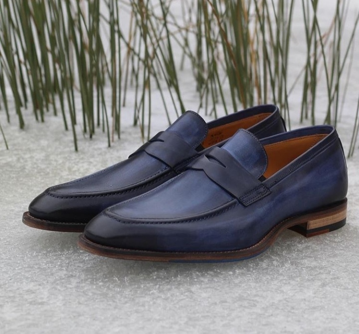 Handmade Navy Blue Leather Loafer Shoes For Men's