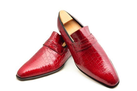Handmade Red Alligator Leather Loafer Shoes For Men's
