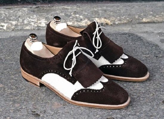 Handmade Two Tone Leather Suede Wing Tip Brogue Shoes For Men's