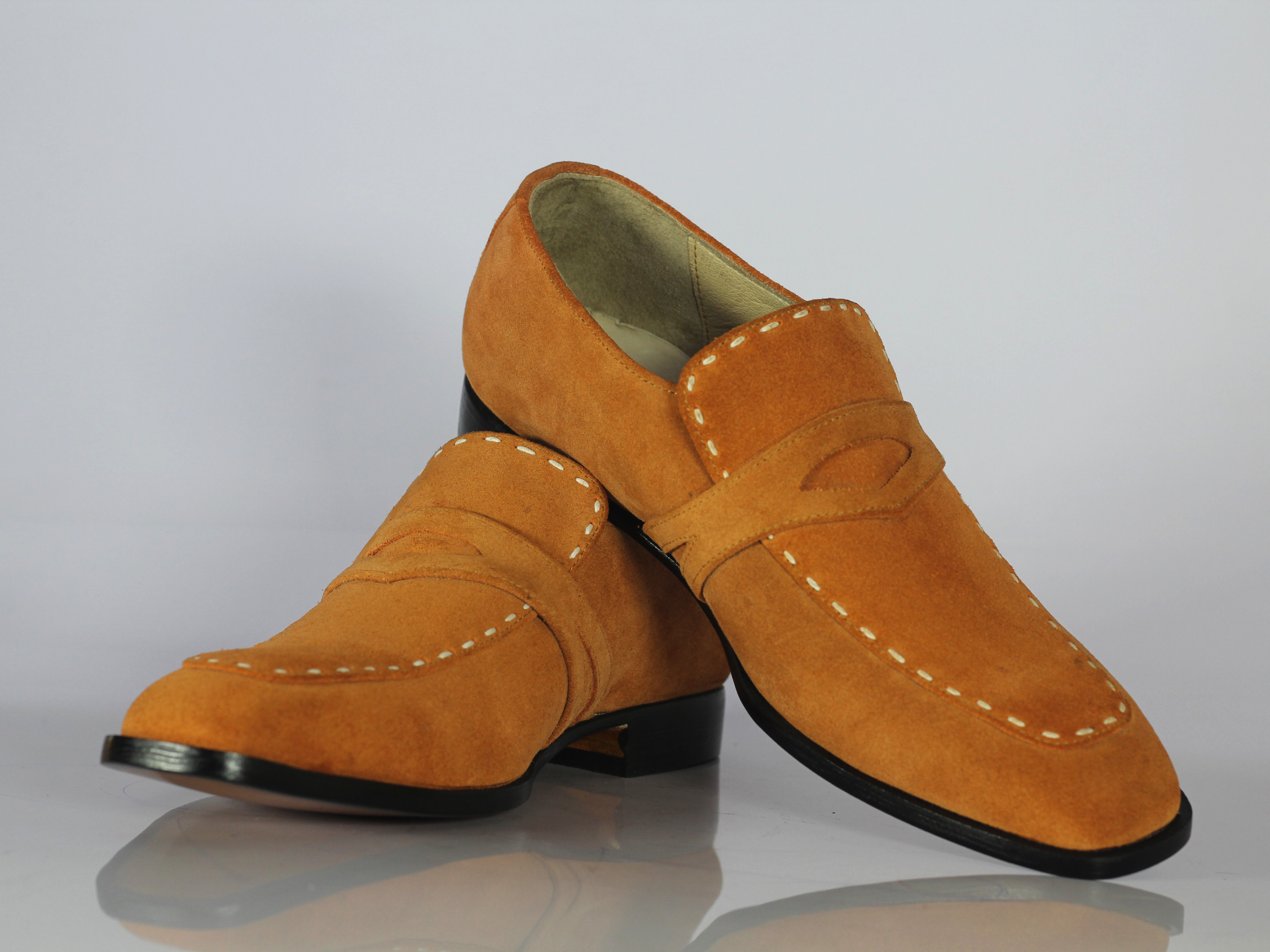 Handmade Tan Suede Round Toe Shoes For Men's