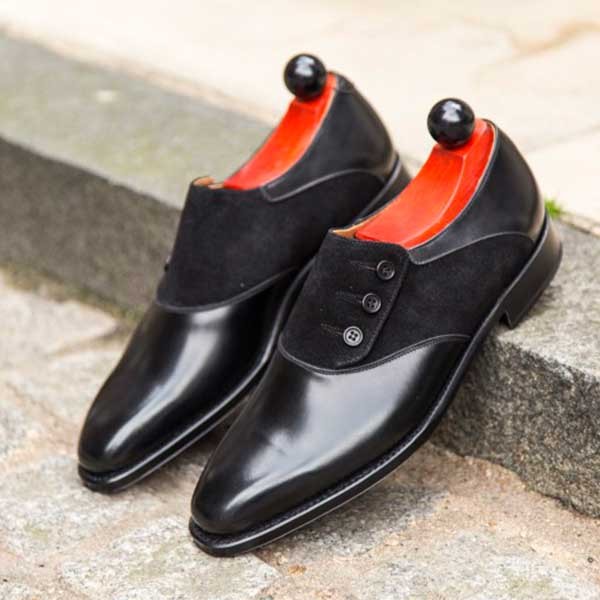 Handmade Black Leather Suede Button Top Dress Formal Shoes For Men's