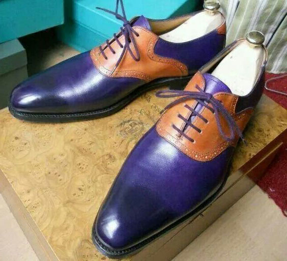 Handmade Purple & Tan Leather Lace Up Dress Formal Shoes For Men's