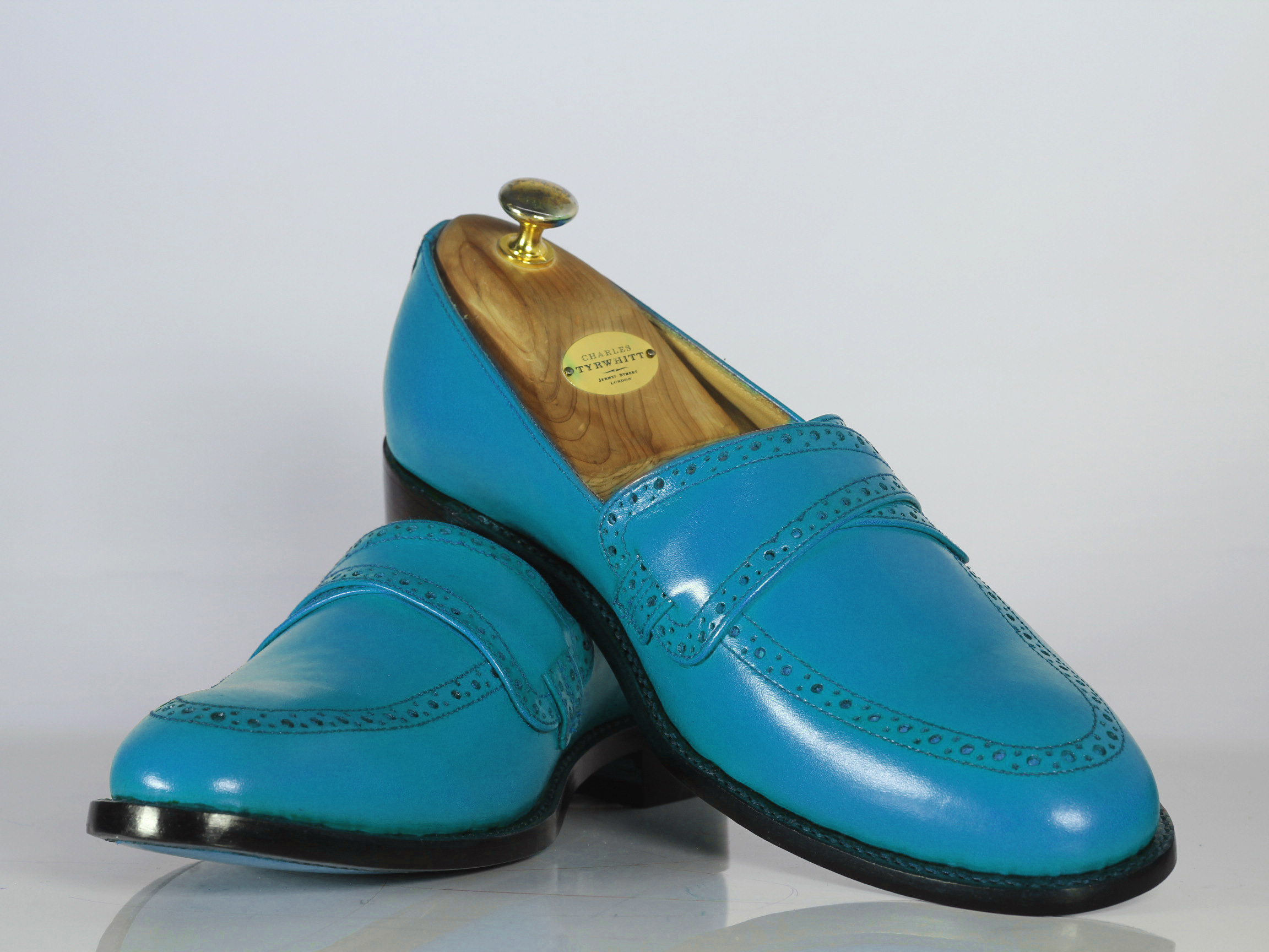 Handmade Sky Blue Leather Loafer Stylish Shoes For Men's