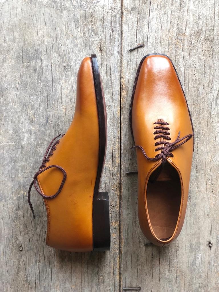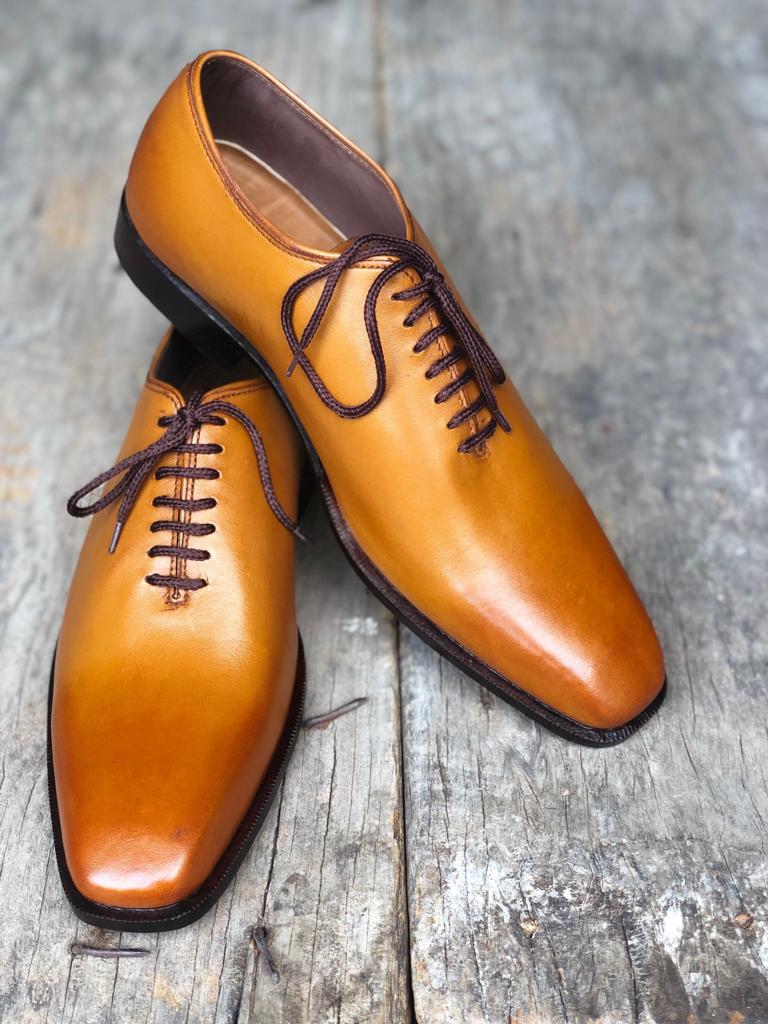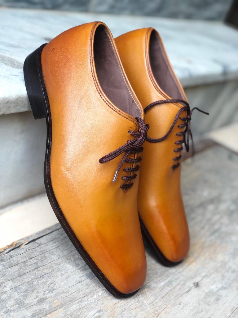 Handmade Tan Leather Dress Formal Lace Up Shoes For Men's