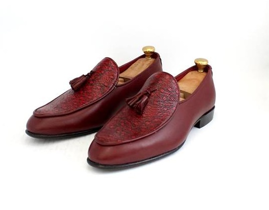 Handmade Burgundy Leather Tussles Loafer Shoes For Men's