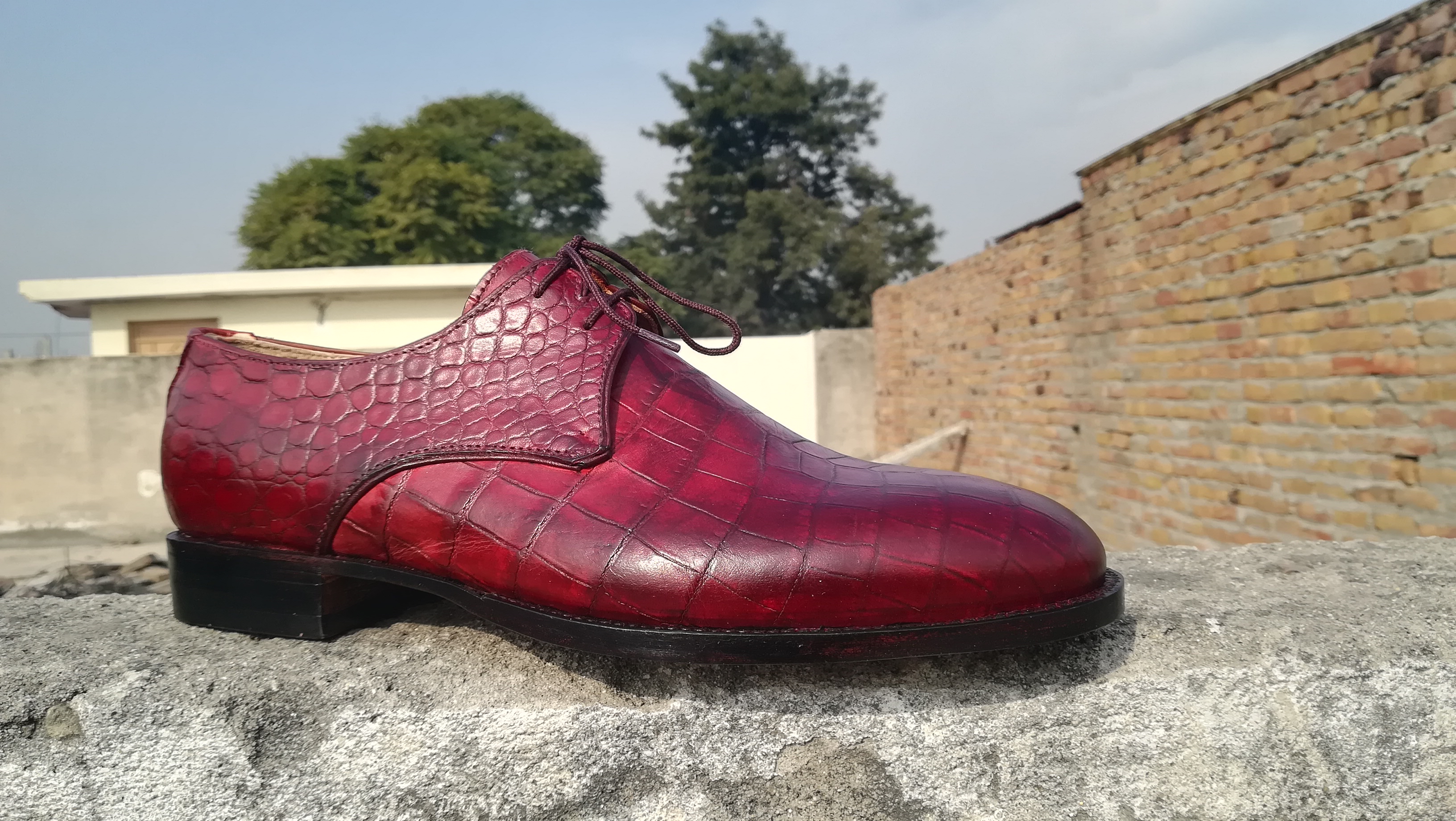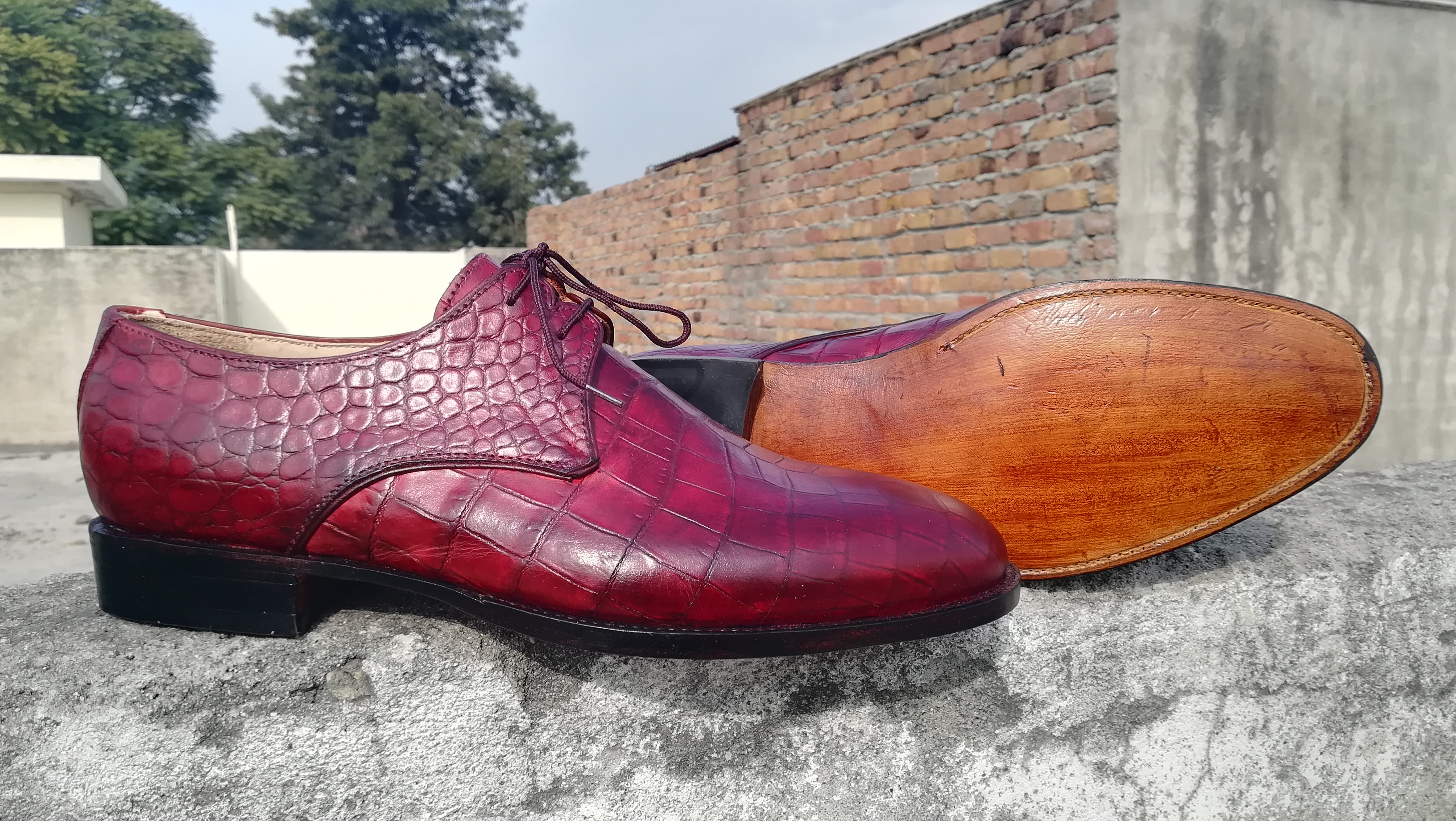 Bespoke Burgundy Alligator Leather Lace Up Shoes For Men's