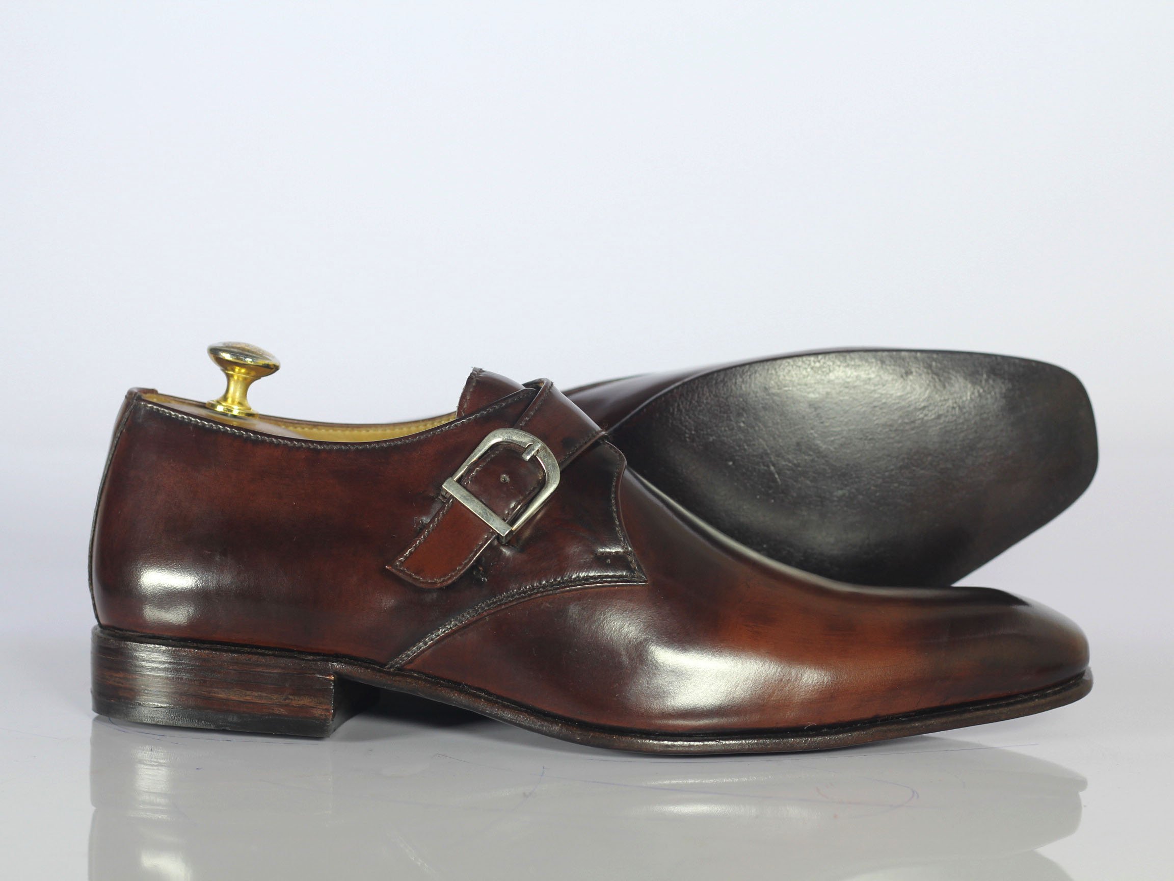 Handmade Burgundy Single Monk Strap Shoes For Men's