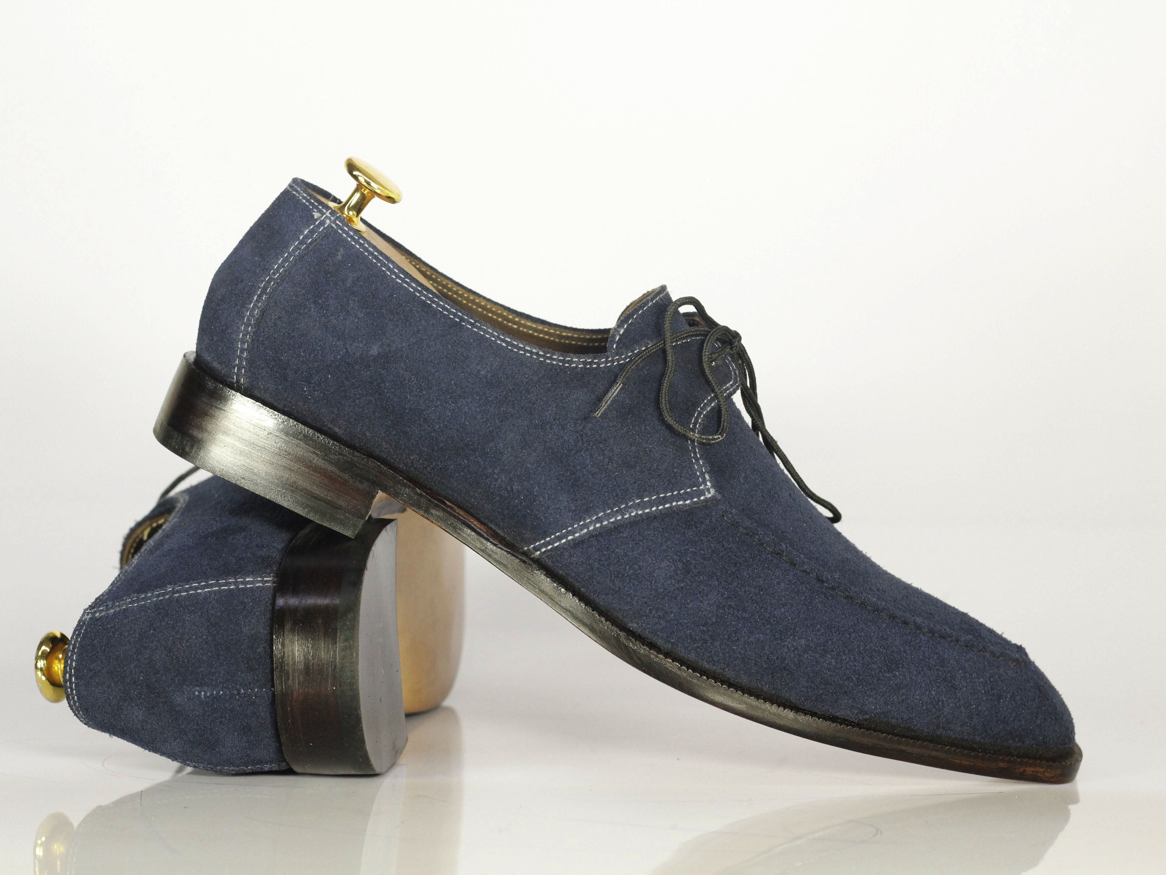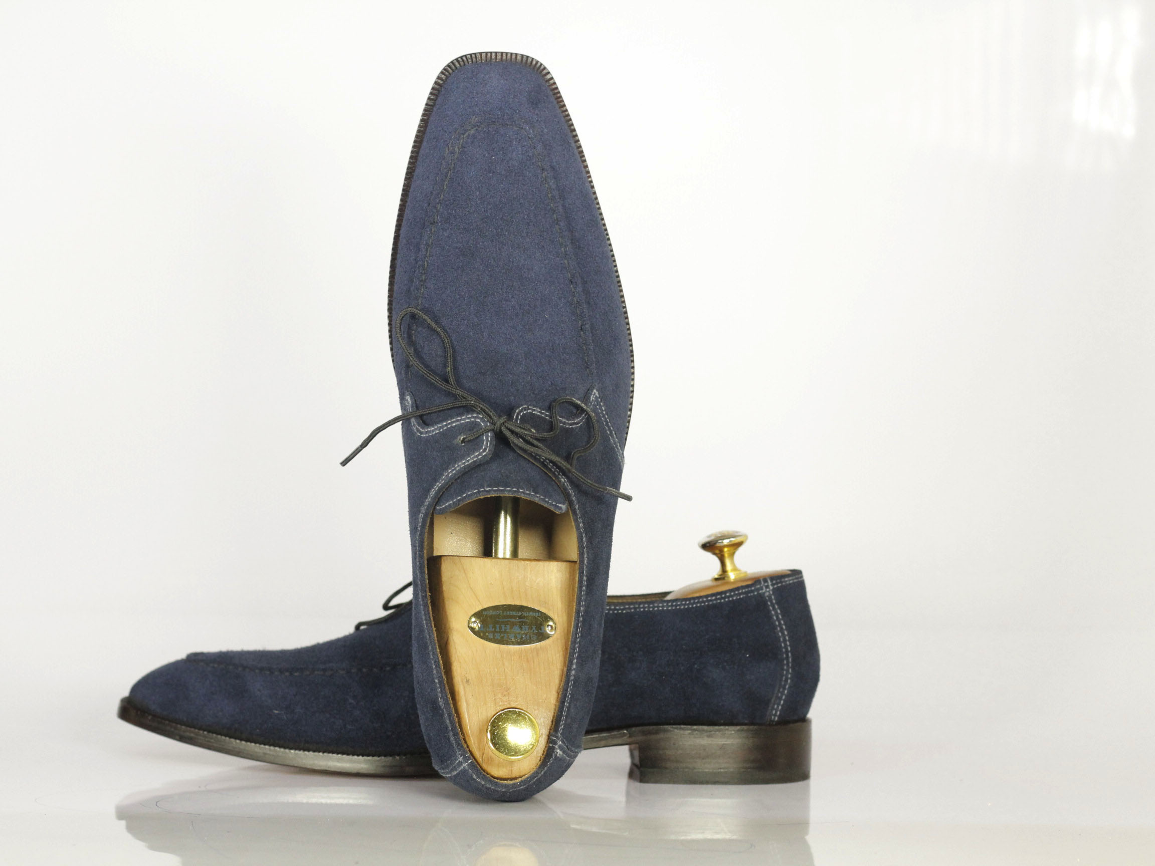 Men's Navy Leather Round Toe Dress Lace Up Shoes