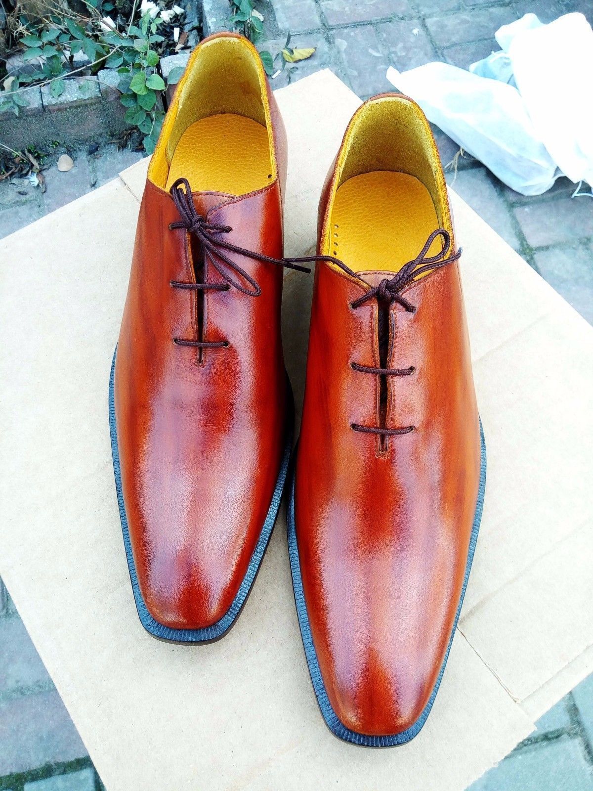 Handmade Men's Tan Whole Cut Dress Formal Leather Shoes