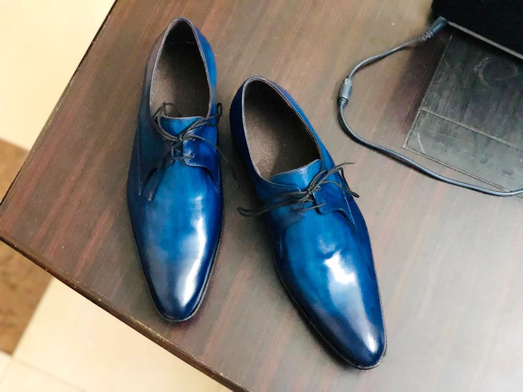 New Bespoke Men's Blue Derby Lace Up Shoes, Handmade Elegant Formal Leather Shoes