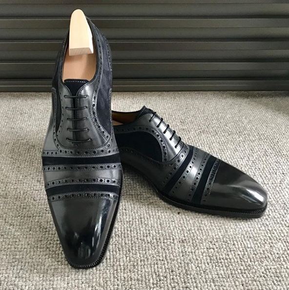 New Handmade Black Cap Toe Suede Leather Lace Up Fashion Shoes, Stylish Elegant Dress Leather Shoes