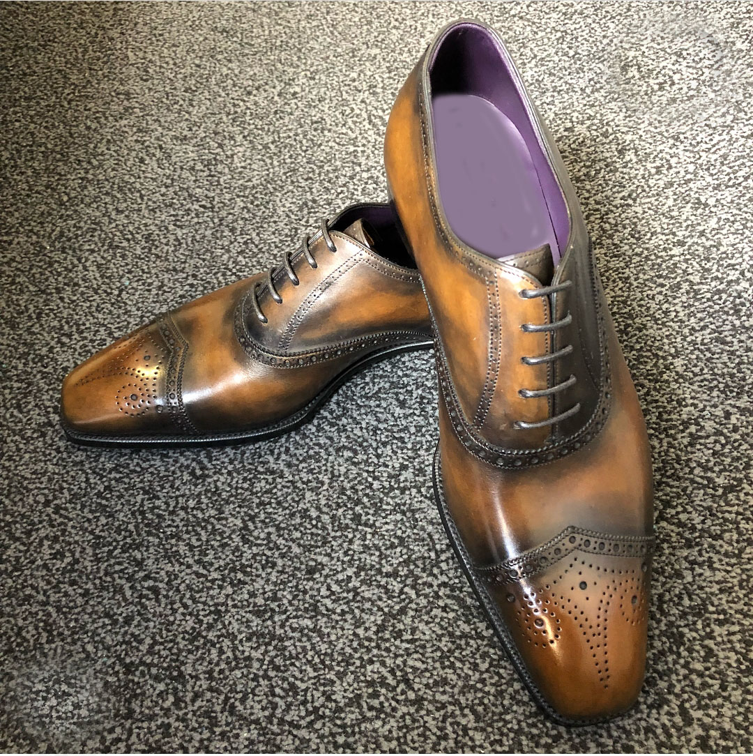 Handmade Bespoke Rusty Brown Color Wing Tip Style Shoes, Leather Dress Lace Up Brogues
