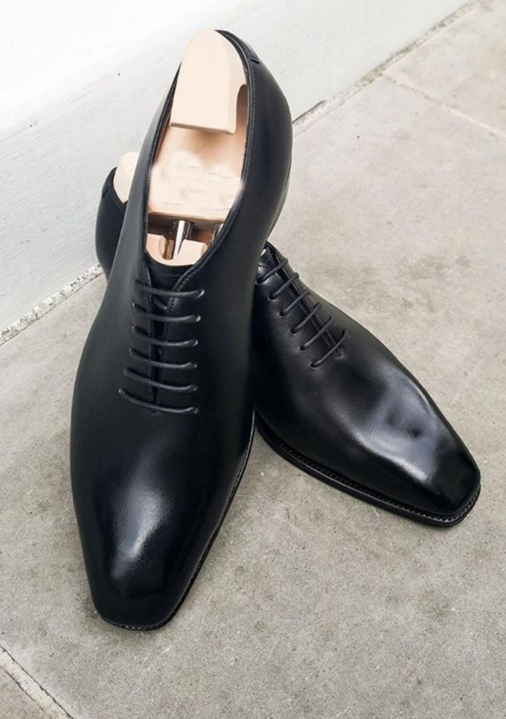 Men Black Whole Cut Formal Leather Lace Up Shoes, New Handmade Dress Leather Shoes