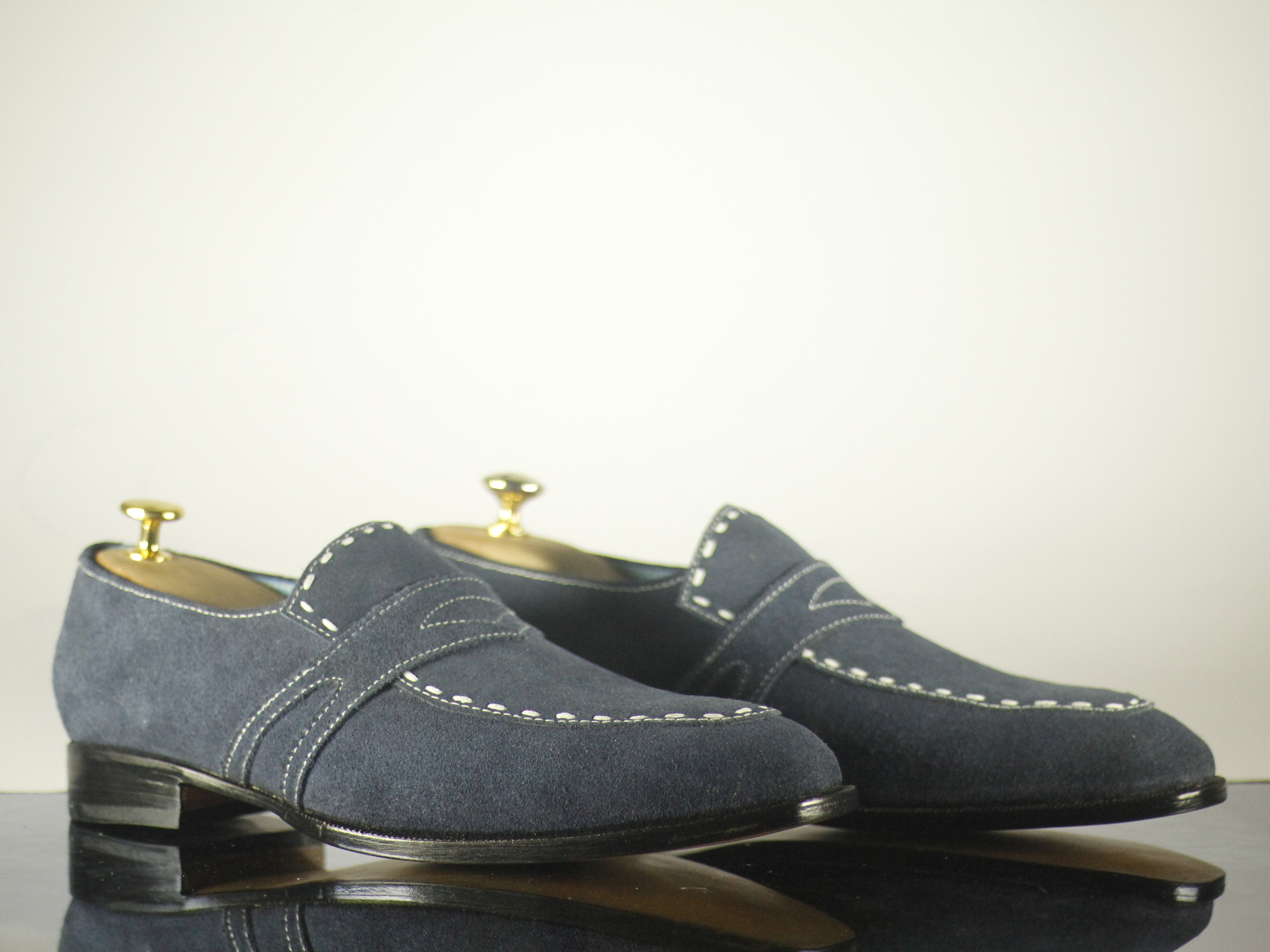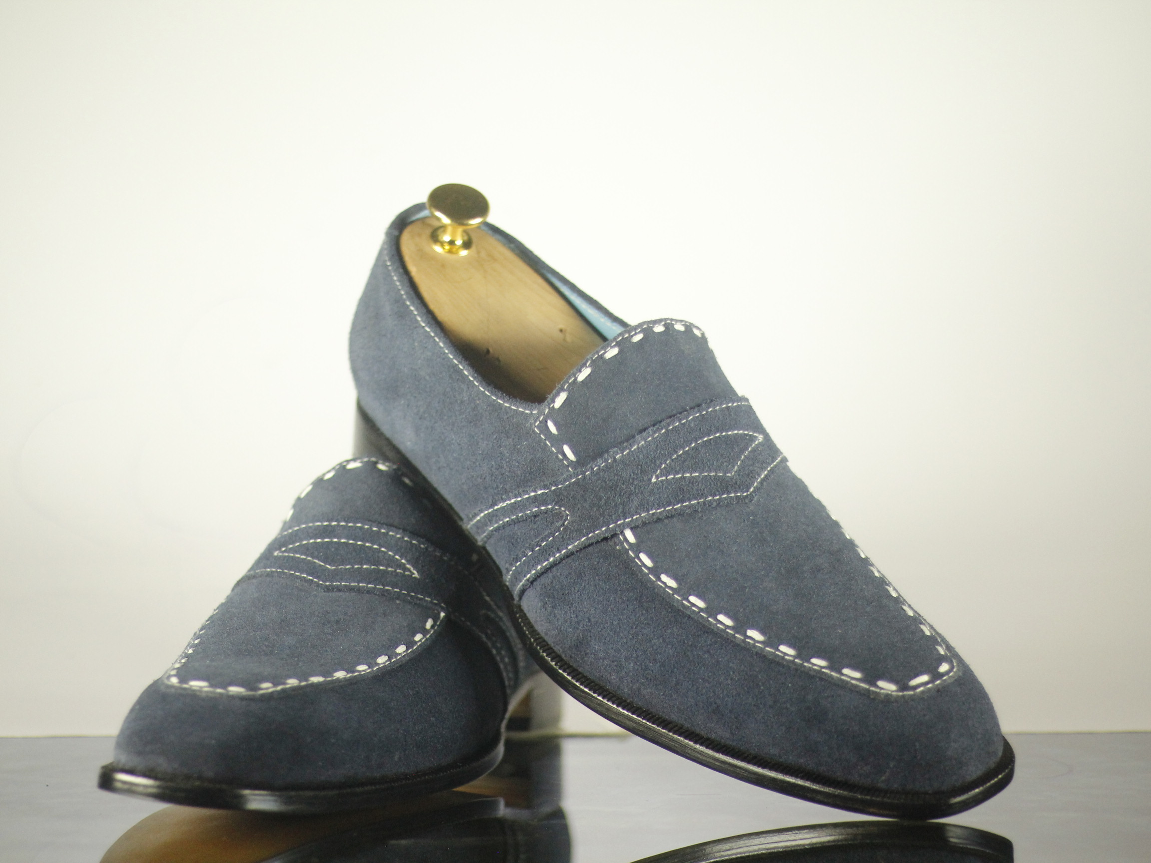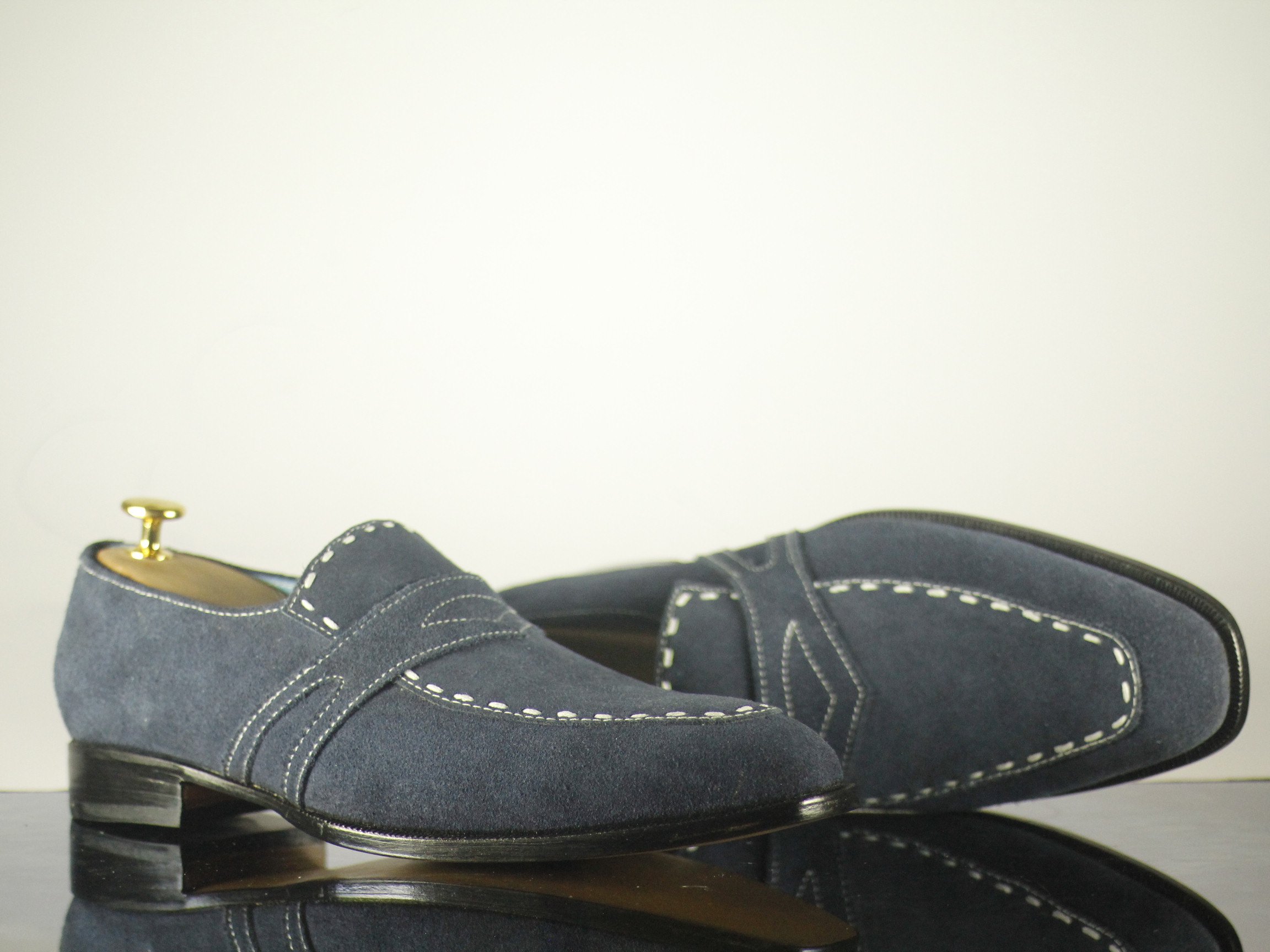 New Decent Men`s Gray Loafer Suede Formal Shoes, New Bespoke Square Toe Shoes