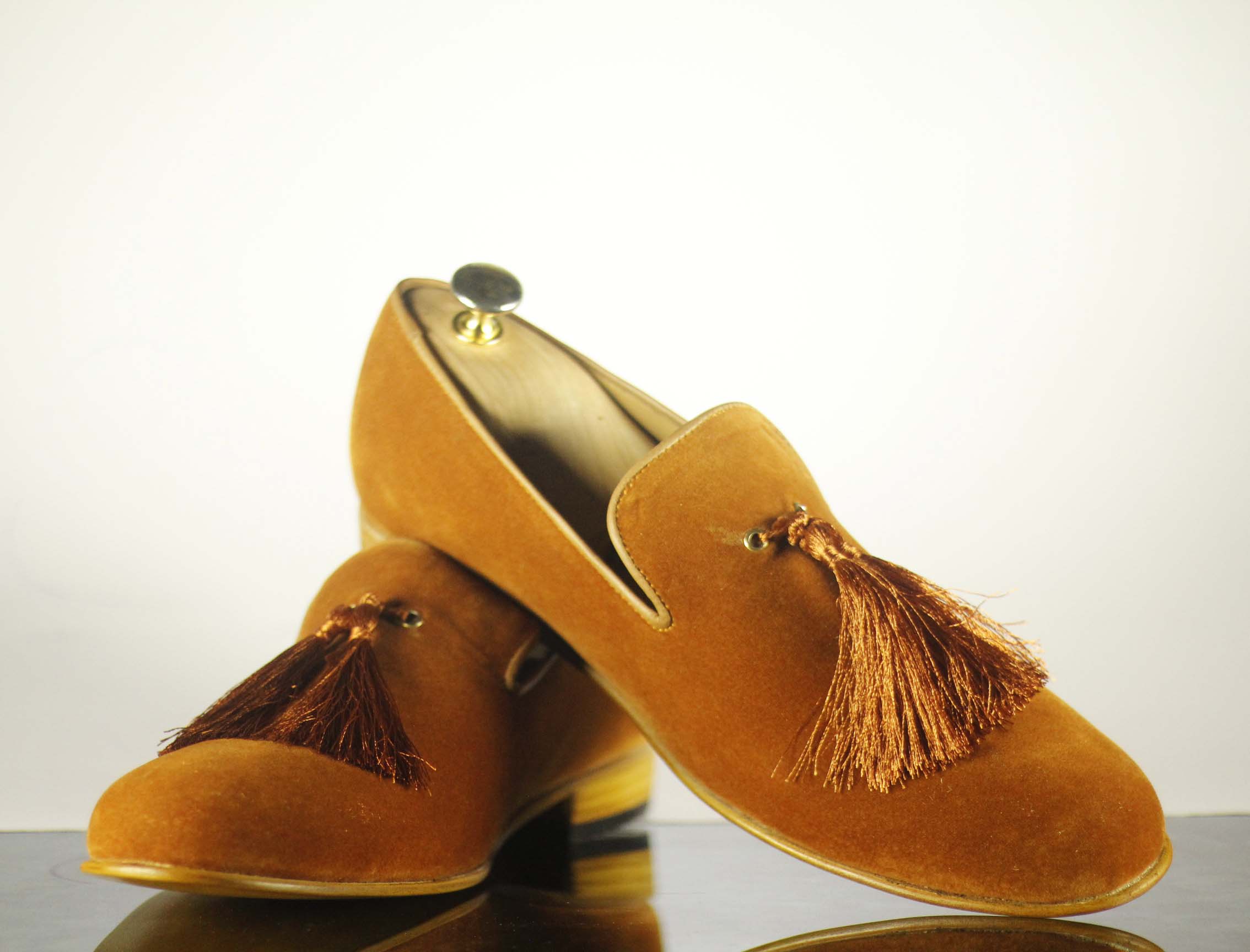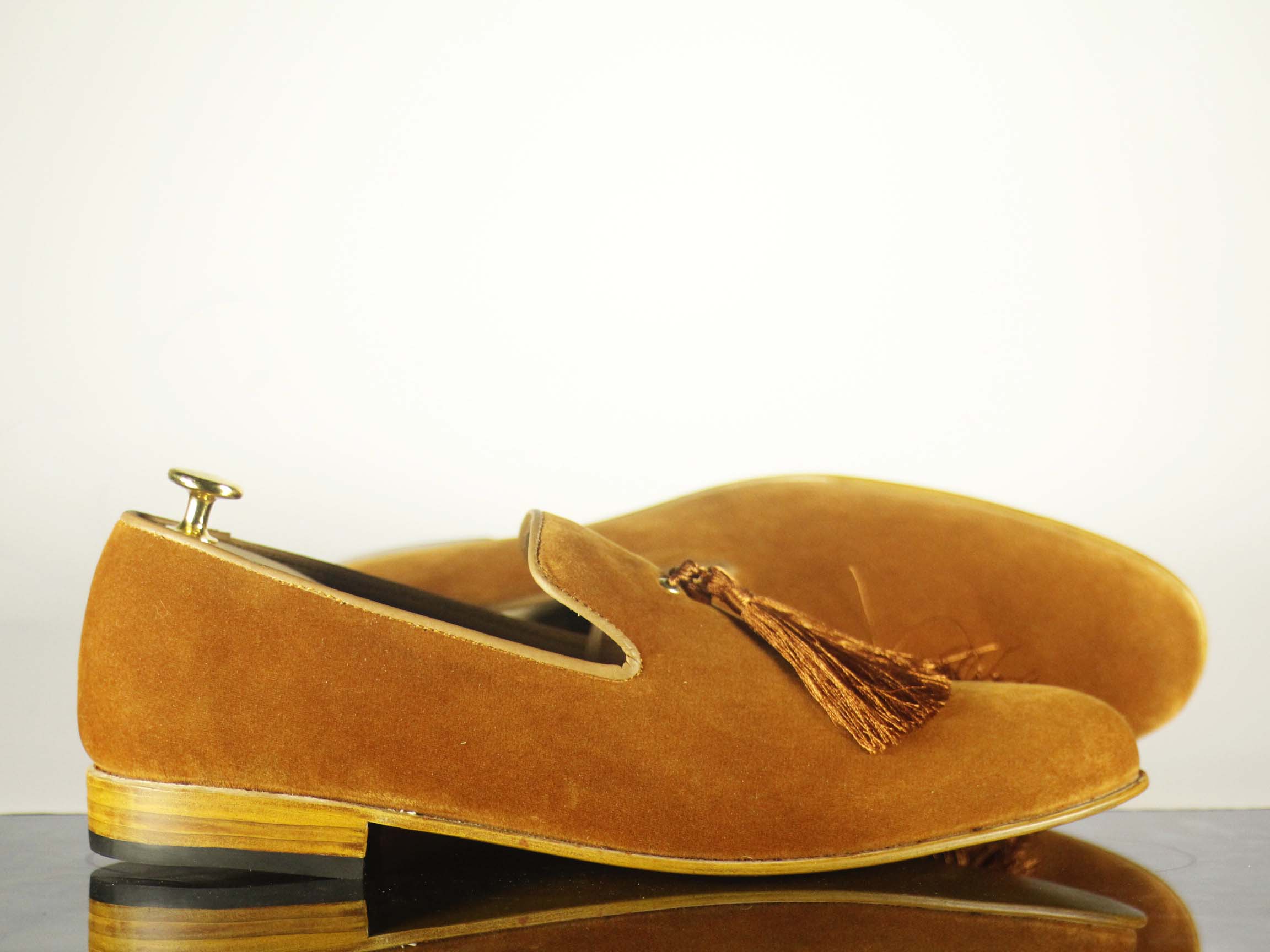 Handmade Tan Tussles Suede Stylish Loafers For Men's