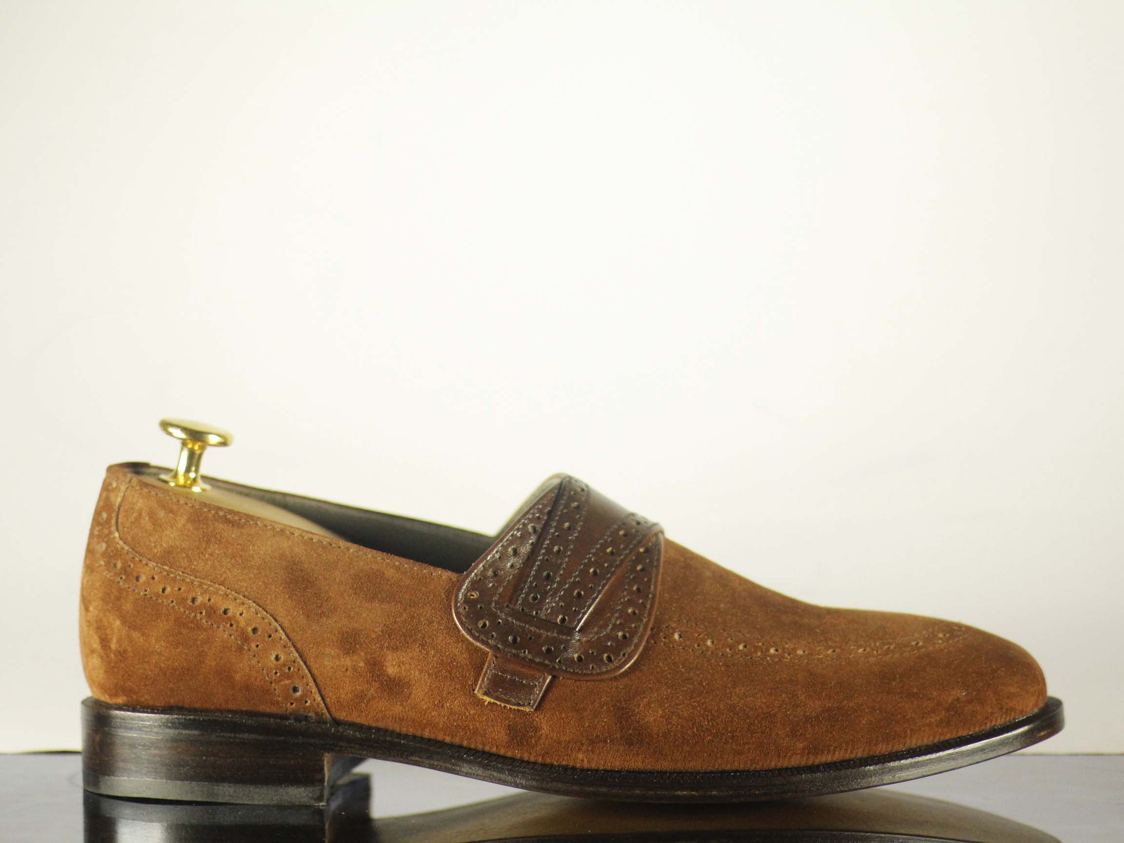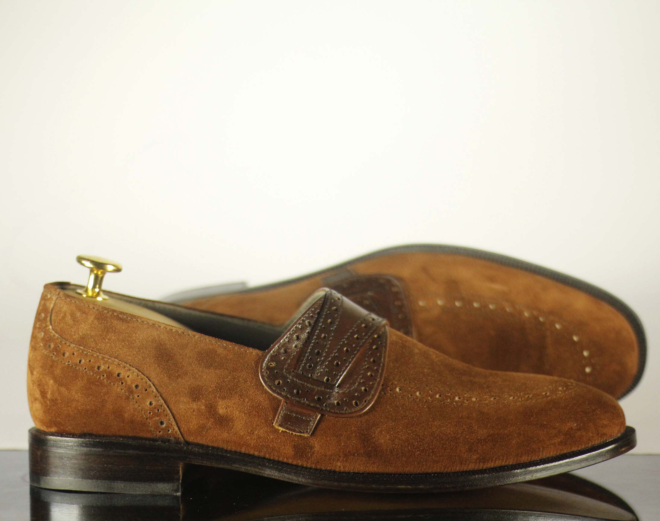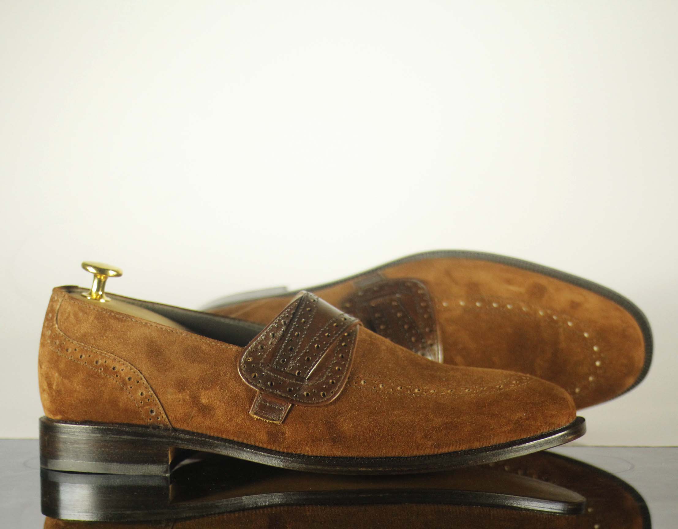 Handmade Tan Round Toe Suede Stylish Dress Formal Loafers For Men's